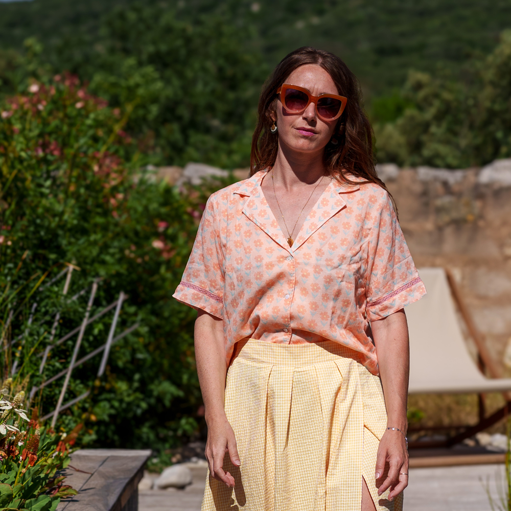 Blouse femme 100% coton, voile de coton imprimé fleuri très léger, ideal pour l’été doublée voile de coton, manches courtes, boutonnée sur le devant Découvrez d’autres modèles similaires: https://lilinoa.com/categorie/femme-collection-ete/