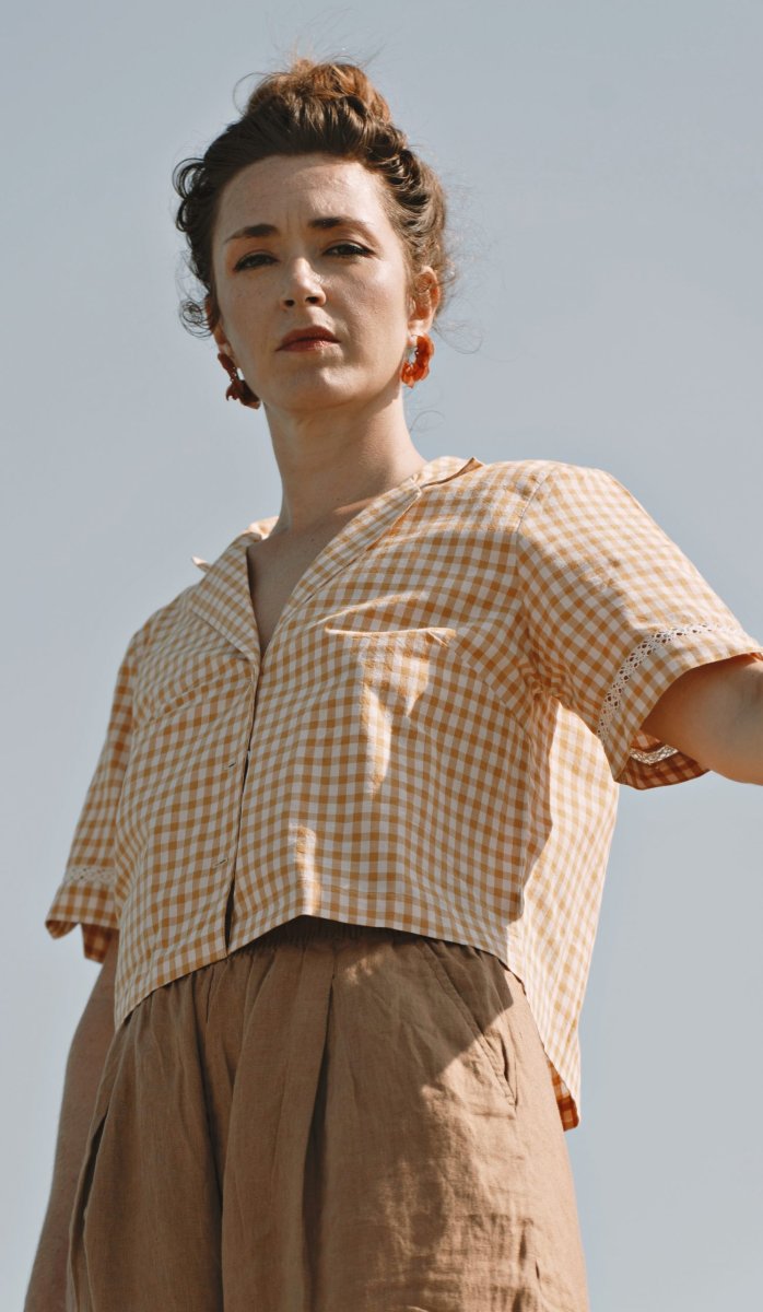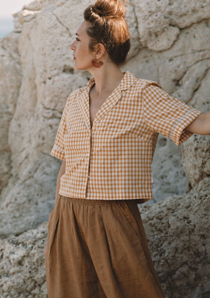 Blouse Liane La blouse Liane séduit par sa coupe droite, raffinée et élégante, pensée pour une silhouette à la fois simple et délicate. Elle se distingue par son joli col et son boutonnage sur le devant qui lui apportent une touche de charme intemporel. Confectionnée en 100 % coton, dans un vichy doux et lumineux, […]