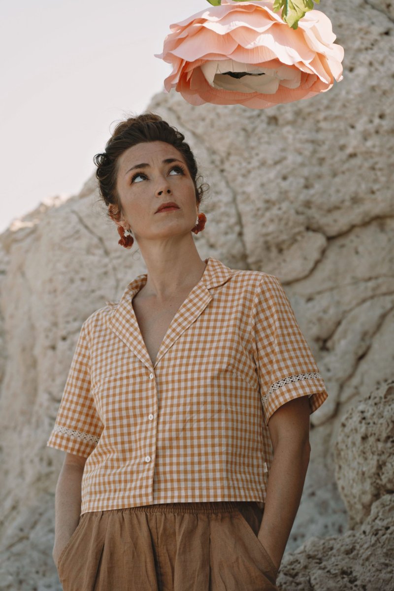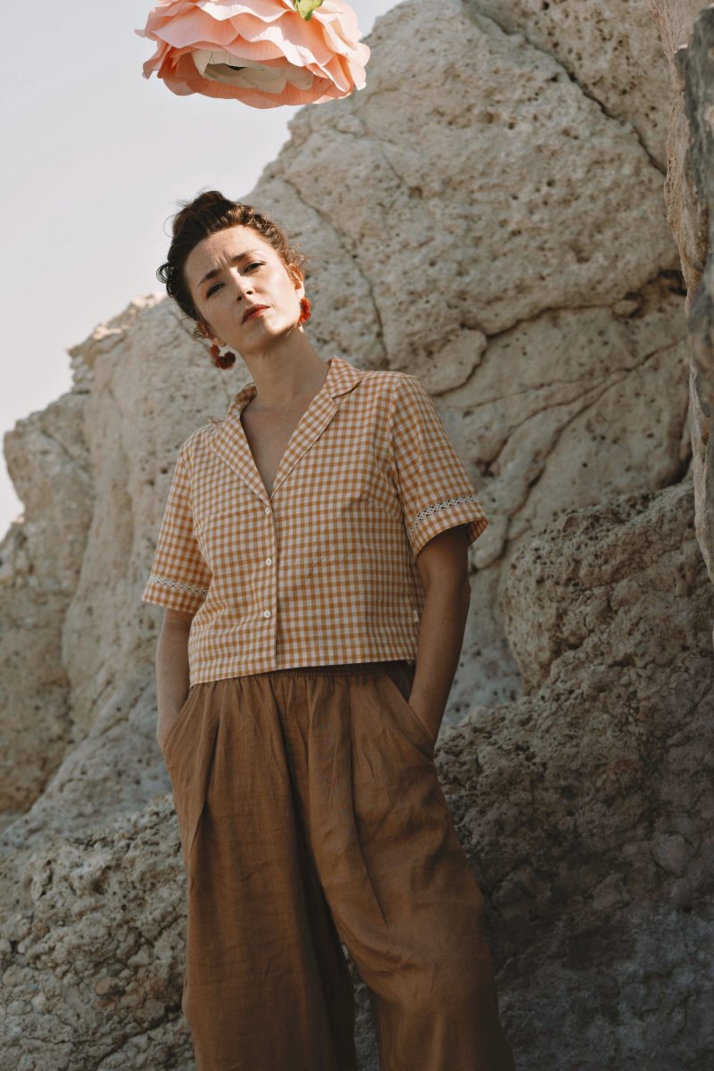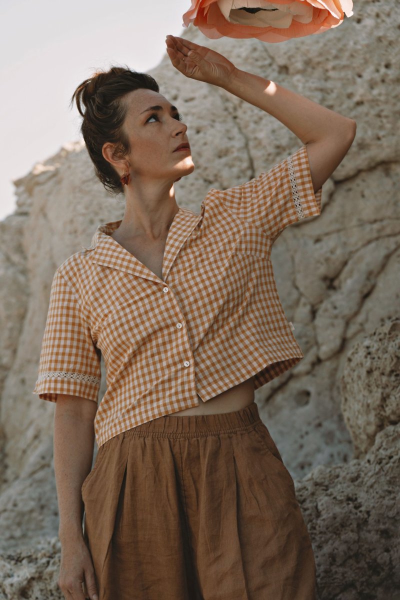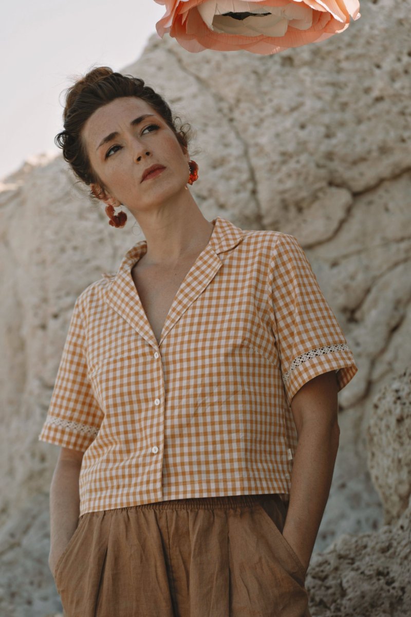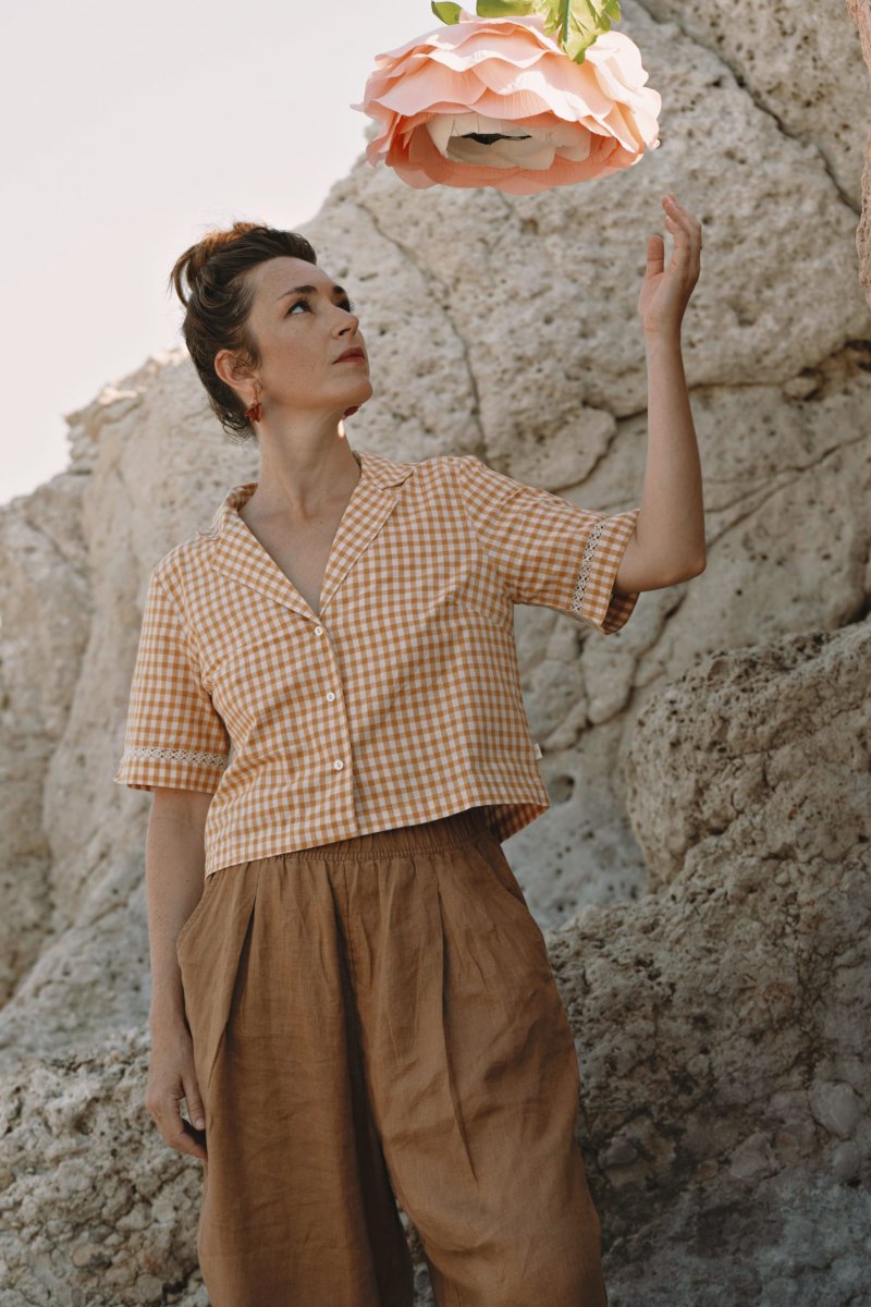 Facile à associer, la blouse Liane se porte aussi bien avec une jupe longue ou courte, qu’avec un pantalon, pour un style élégant et naturel au quotidien.