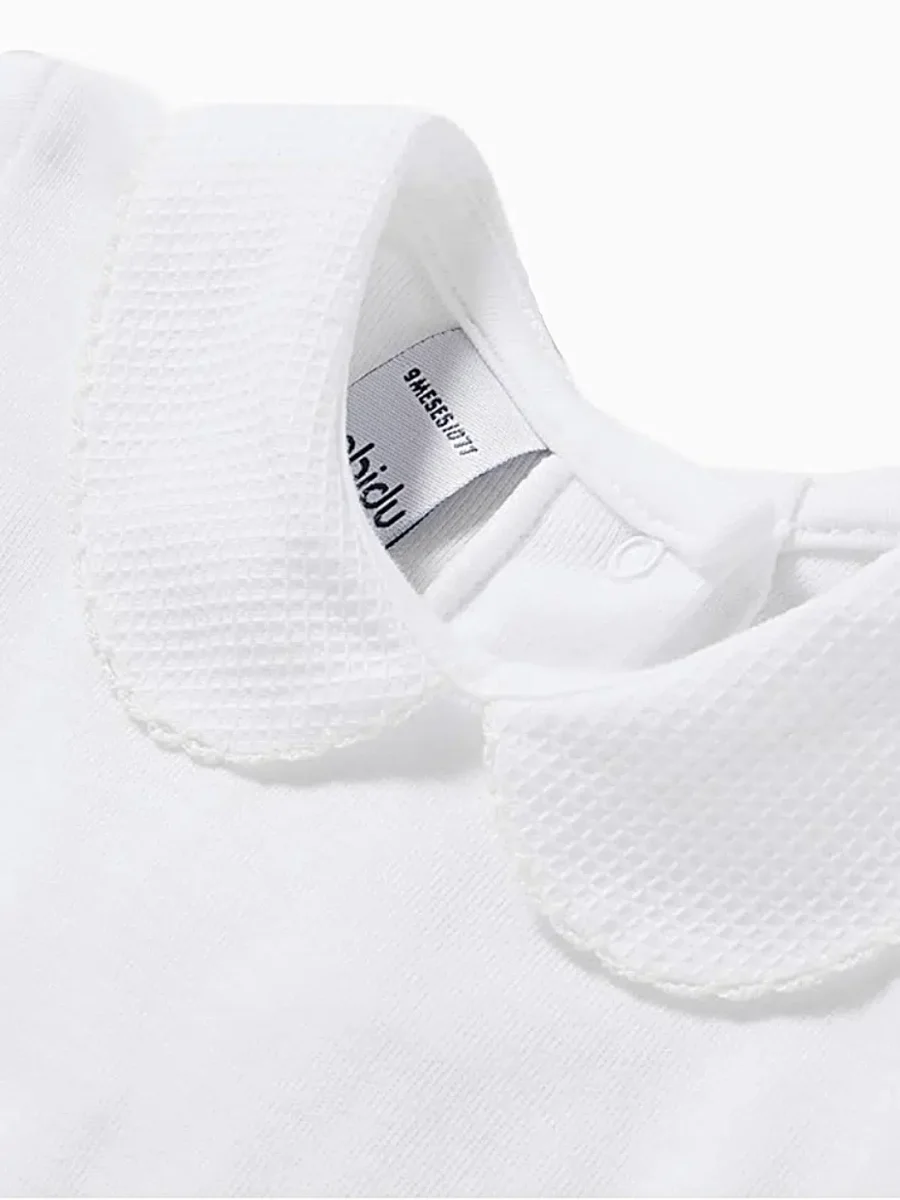 Confectionné avec soin en Espagne, ce joli body incarne le mariage harmonieux entre raffinement et qualité. La texture délicate du col ajoute un détail élégant, tandis que la douceur du tissu garantit le bien-être de votre bébé. Les manches longues offrent une chaleur douillette, en faisant un choix parfait pour les journées plus fraîches et le col est très joli porté au-dessus d’un pull ou un gilet en automne et en hiver. Ce body s’adapte parfaitement à toutes les saisons et offre à votre bébé la liberté de mouvement nécessaire pour ses premiers pas et ses découvertes.