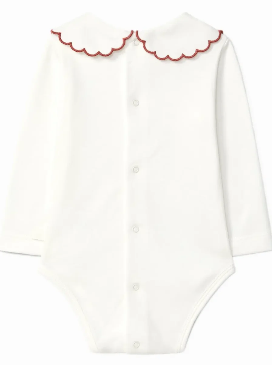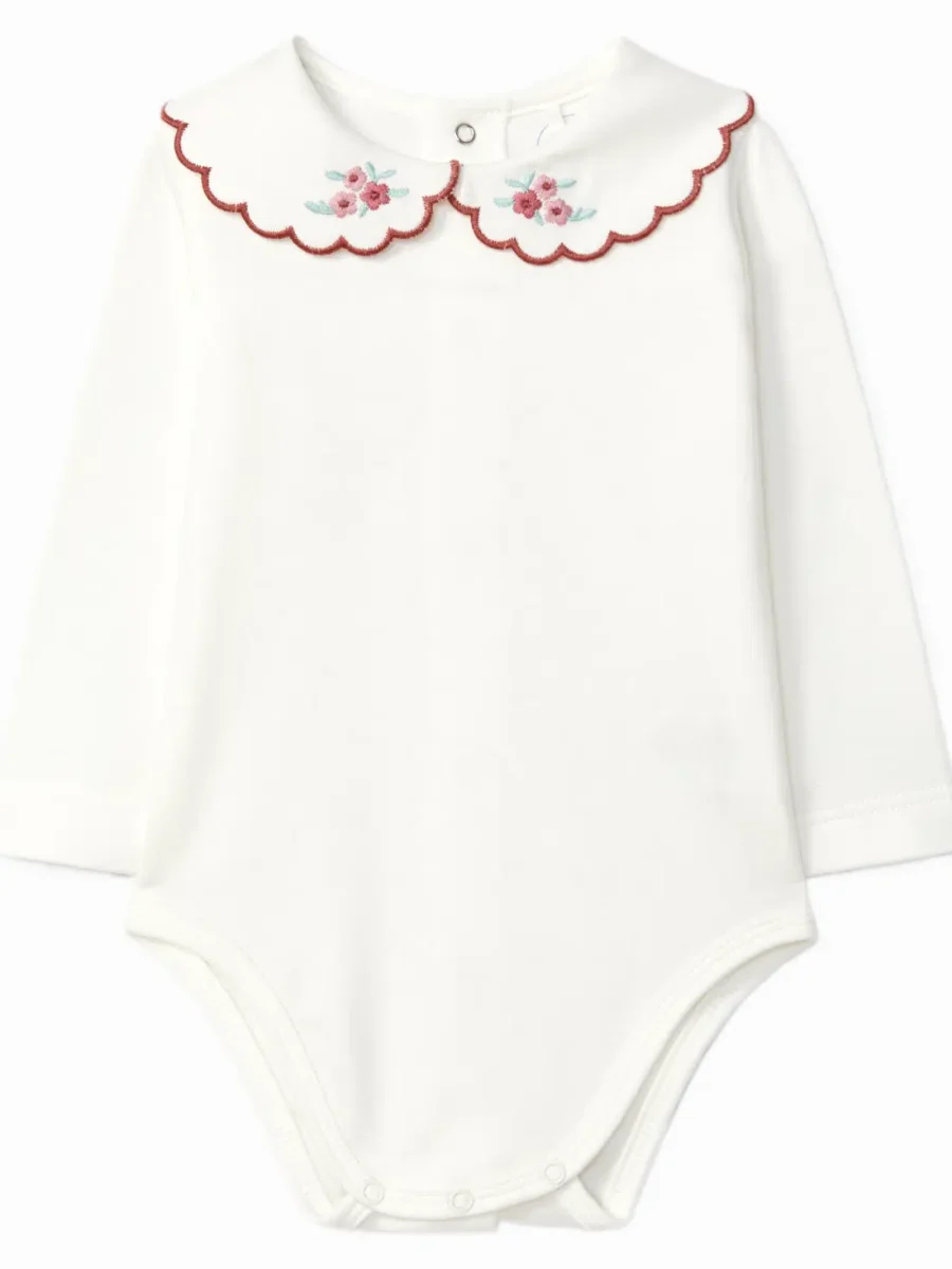 Manches longues Col brodé de fleurs Fermé par une patte de boutons-pression au dos Boutons-pression à l’entrejambe 100% jersey de coton Fabriqué au Portugal Ce body taille normalement. Choisissez la taille habituelle.