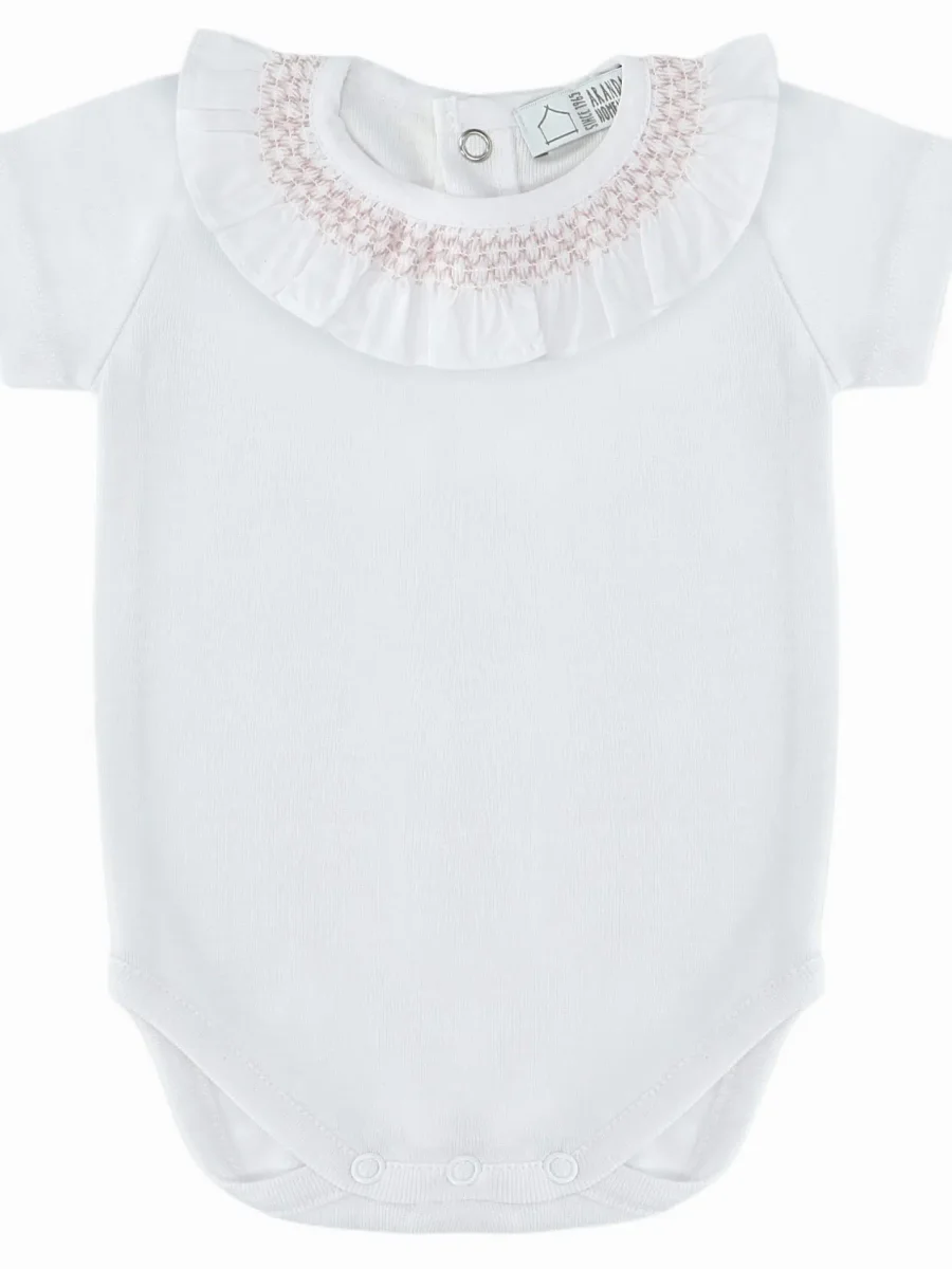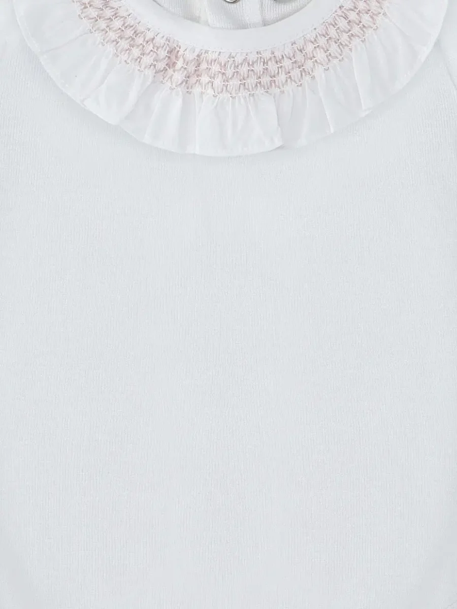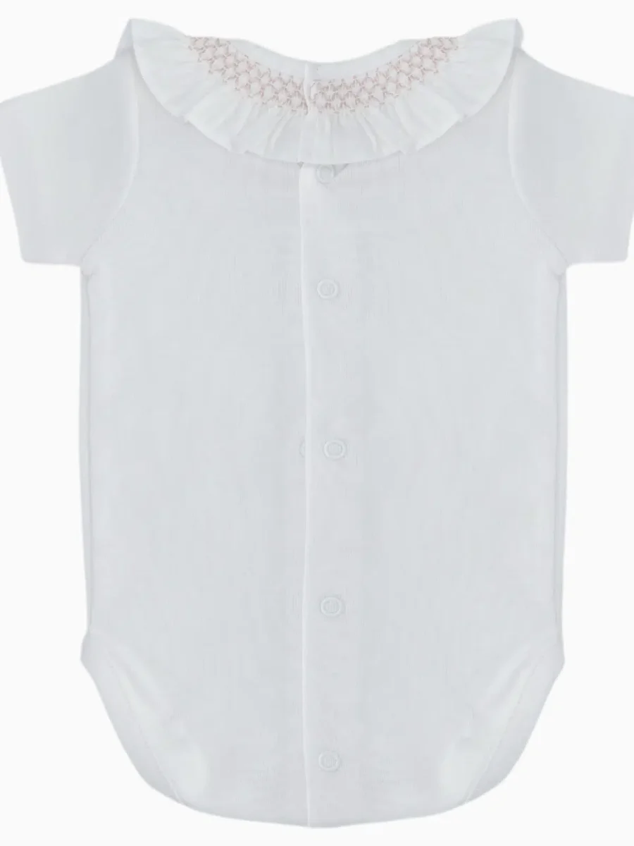 Body bébé filles manches courtes à col smocké – Blanc