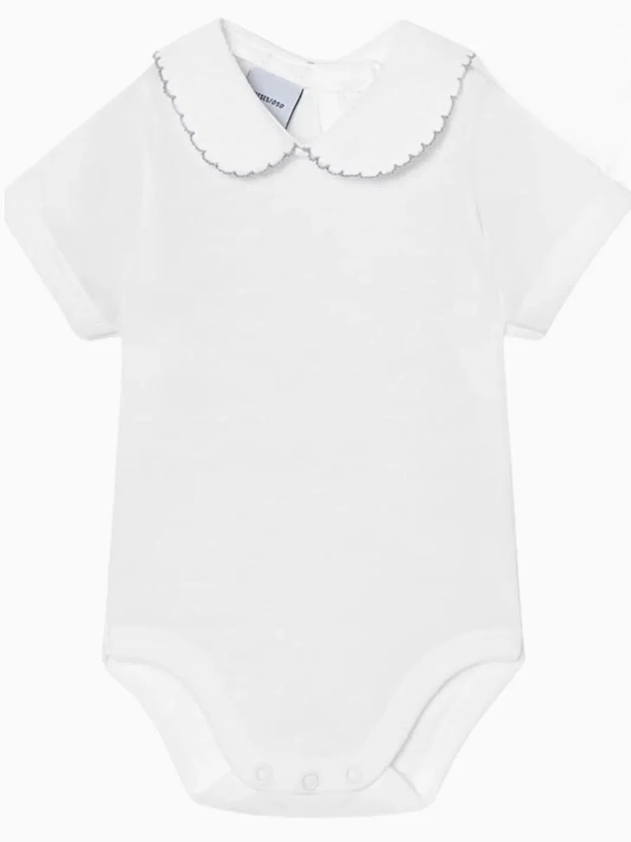Body bébé manches courtes à col rond texturé et liseré gris – Blanc