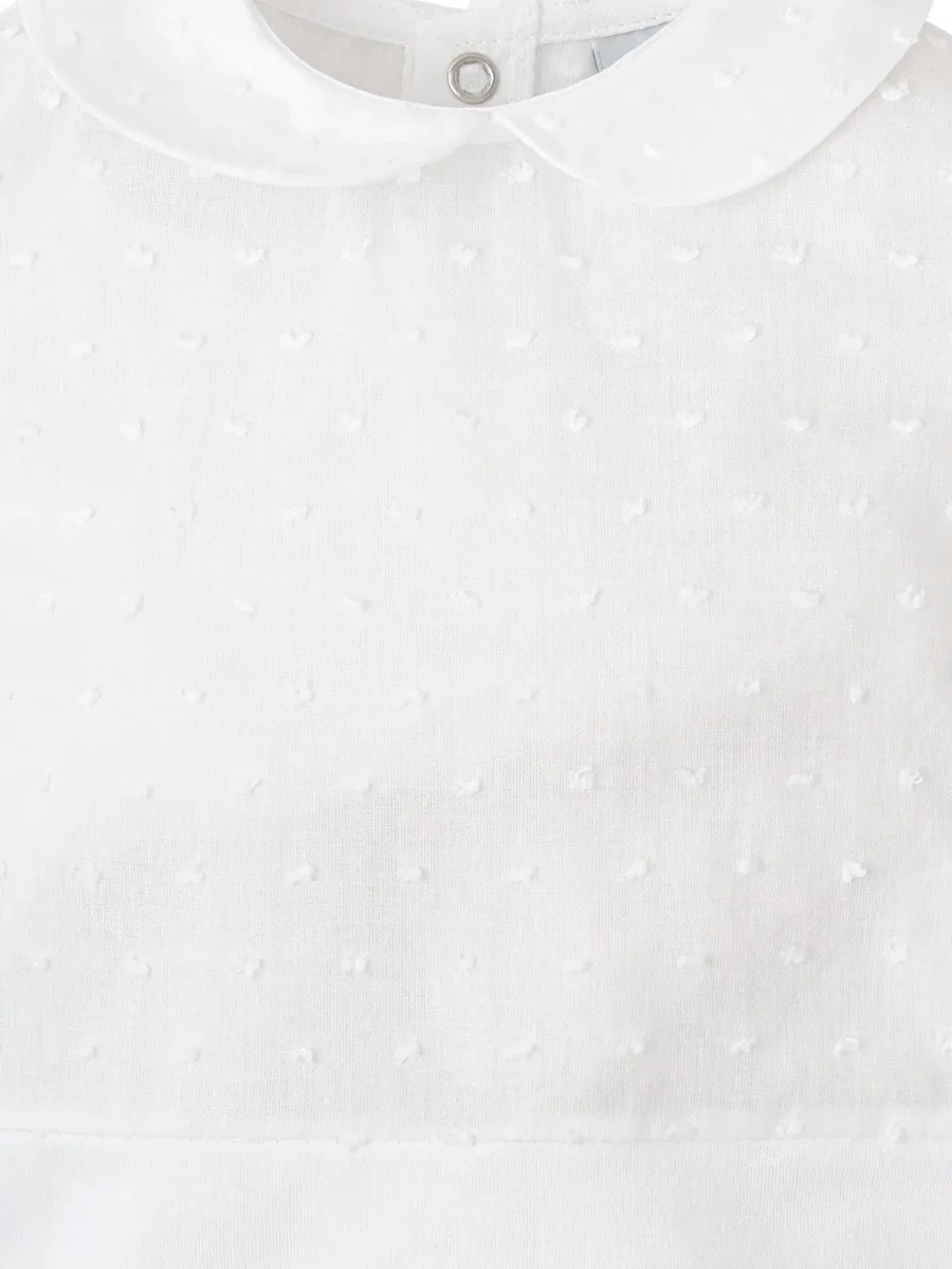 Offrez à votre bébé un vêtement à la fois pratique et raffiné avec notre body bébé manches courtes plumetis. Ce modèle intemporel, confectionné en 100 % coton blanc, se distingue par son tissu délicat en plumetis, qui apporte une touche subtile de texture et d’élégance. Avec son col rond classique et sa coupe soignée, ce body s’adapte à toutes les occasions et convient aussi bien aux petites filles qu’aux petits garçons.