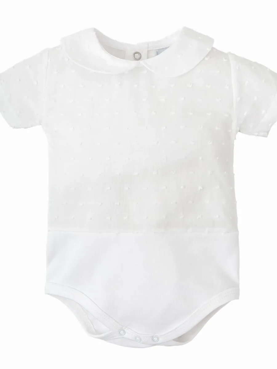 Choisissez ce body manches courtes plumetis pour habiller votre bébé avec délicatesse et simplicité. Une pièce incontournable, à la fois chic et pratique, qui deviendra vite un indispensable de votre collection.
