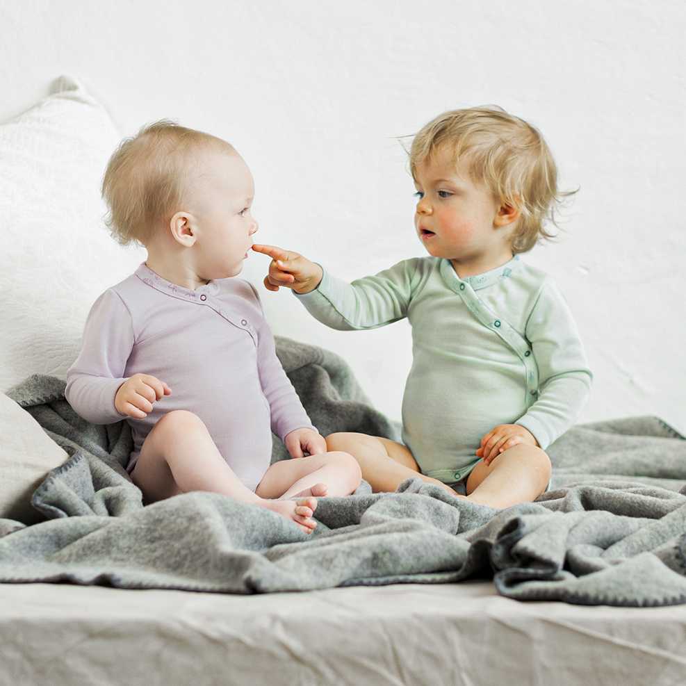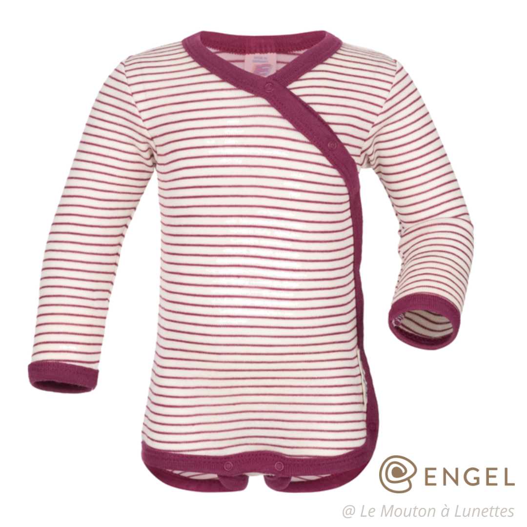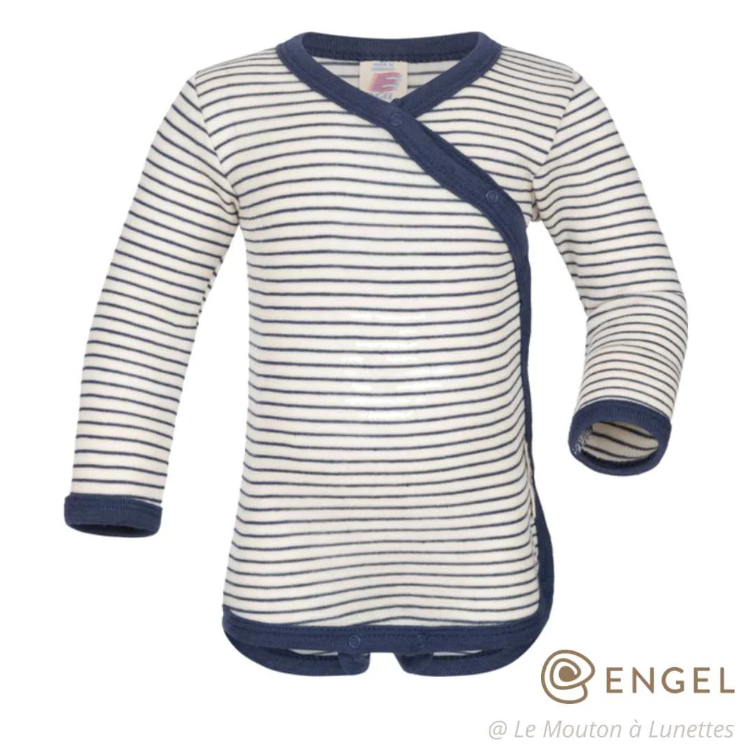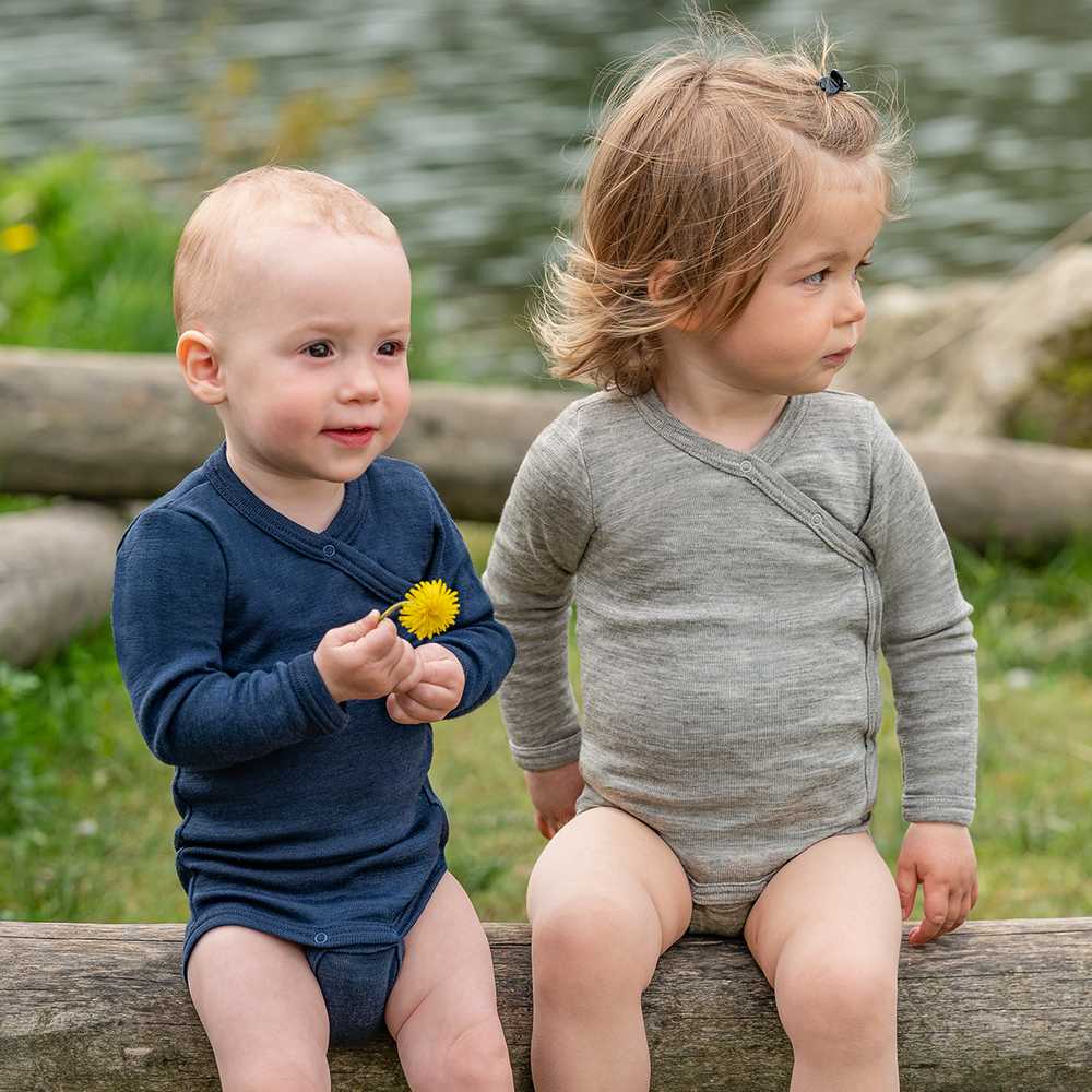 Body croisé manches longues dans un mélange thermorégulateur de laine mérinos bio et soie naturelle d’une grande douceur, qui garantit le confort de bébé en toutes saisons et évite de nombreuses lessives.