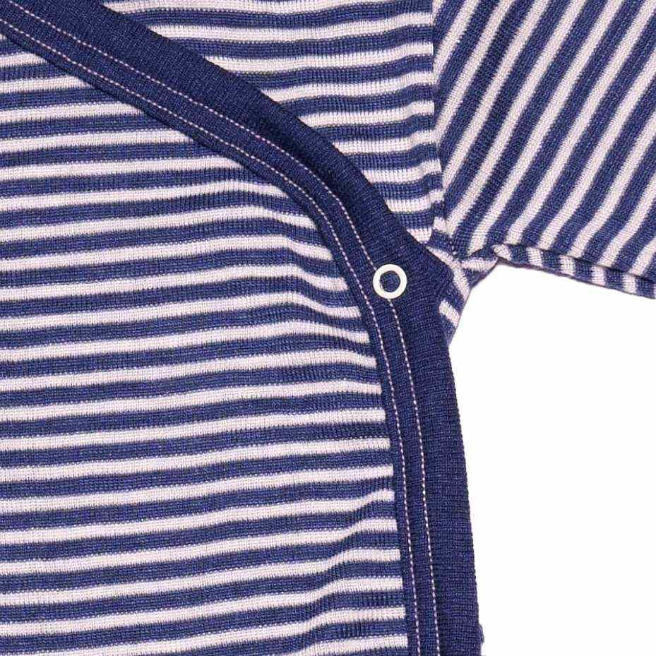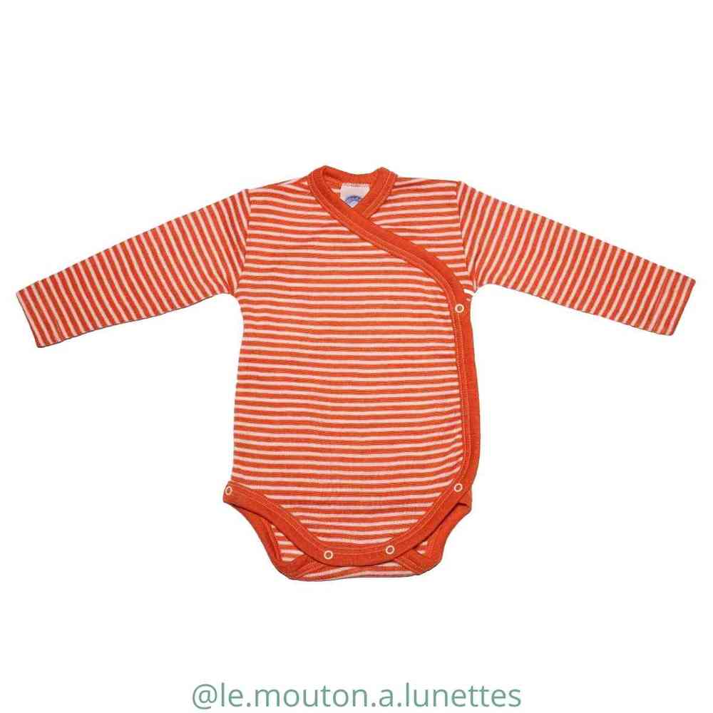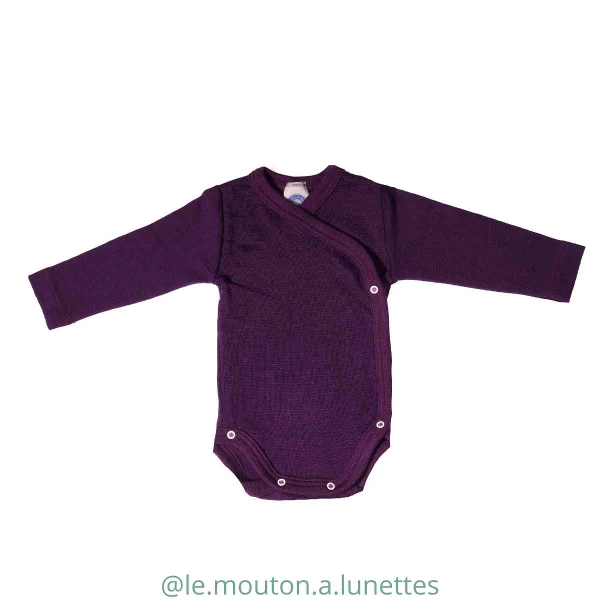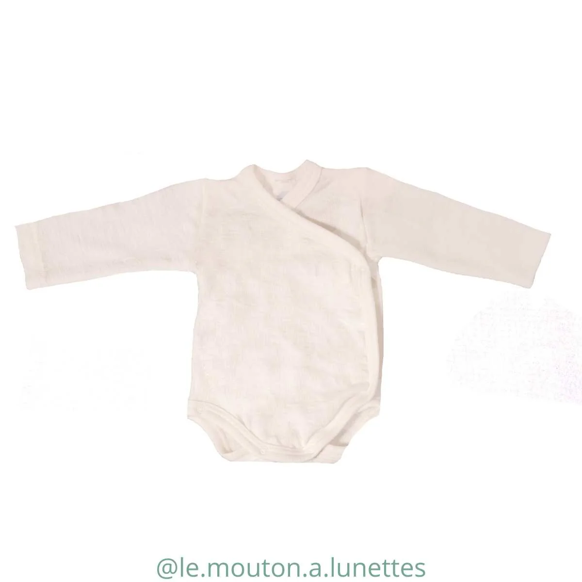 Body croisé en laine mérinos bio et soie naturelle de la marque allemande Cosilana : un essentiel pour bébé en toutes saisons, doux et thermorégulateur. Manches longues.