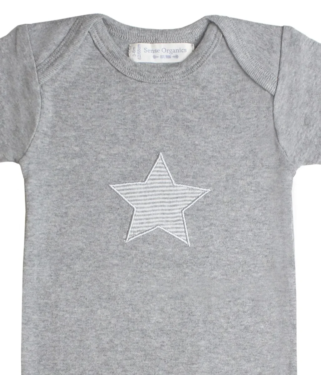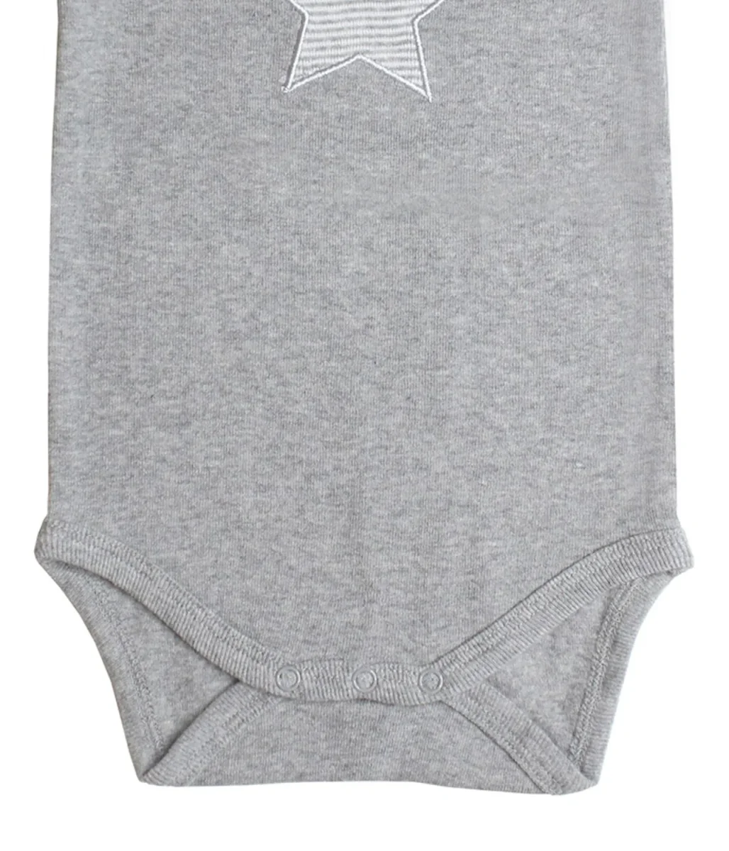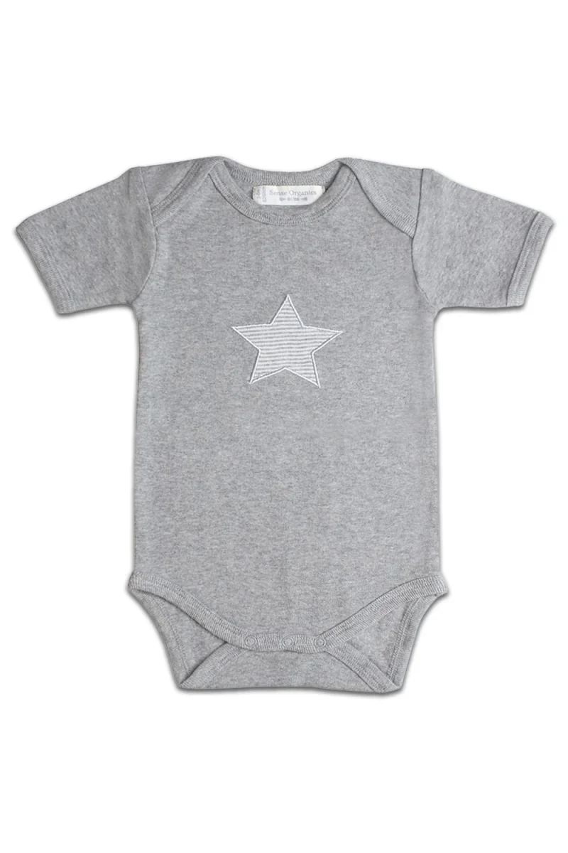 Un body pour bébé est le basique indispensable pour nos plus petits. Ce nouveau modèle de la gamme « Luna » en tissu mélangé gris doux et avec une grande étoile décorative appliquée sur la poitrine. Pour l’été ou les jours plus chauds, avec des manches courtes. Facile à enfiler et excellent, lorsqu’il est porté en combinaison avec une veste ou sous un pull. Le doux coton biologique est doux et moelleux sur la peau délicate de bébé. Les boutons-pression dans le bas ainsi que le col coulissant pratique permettent de changer les vêtements et les couches rapidement et facilement.