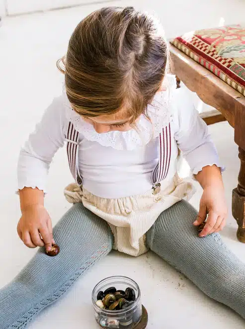 Body bébé élégant avec un col en broderie anglaise délicate. Les manches longues se terminent par un détail élastiqué pour un maintien confortable. La fermeture pratique se fait par deux boutons-pression à l’entrejambe et deux au dos, facilitant l’habillage et le change.Composition : 100% coton, en jersey très doux, épais et résistant pour un confort […]