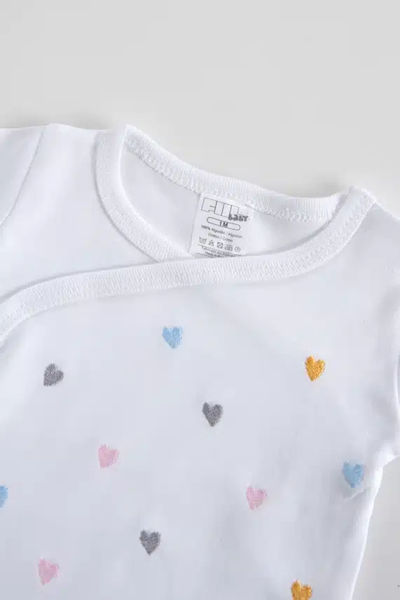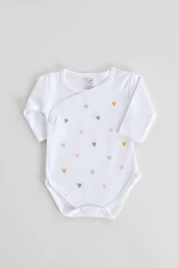 Body naissance : Magnifique body naissance à manches longues avec des applications de coeurs brodés , il est brodé avec des coeurs brodés de couleur.