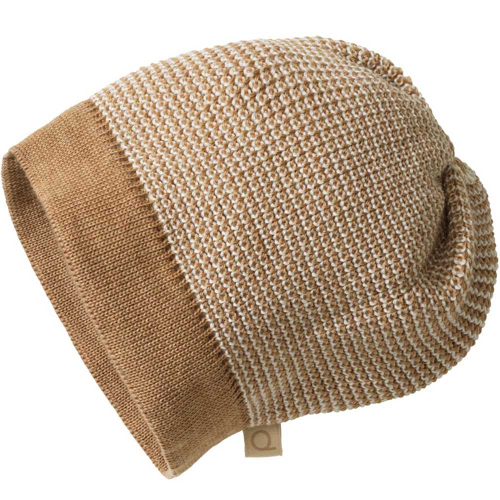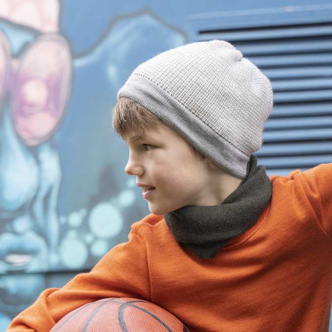 Le bonnet disana est tricoté dans une maille perlée : ce tricot à 3 fils donne de très jolis mélanges, relevés par une bordure unie contrastée. Le tricot est élastique et s’adapte bien au tour de tête, à la coiffure et à la croissance. Ne gratte pas !
