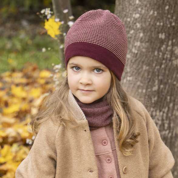 Bonnet en laine mérinos bio pour enfants. Ce beanie disana est une valeur sûre, pensée comme un accessoire chaud, confortable et mixte qui accompagnera votre enfant tout au long de la saison froide, joliment assorti à un des tours de cou de la marque.
