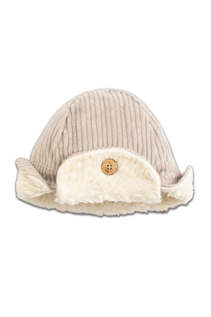 Bonnet en Velours Côtelé Beige