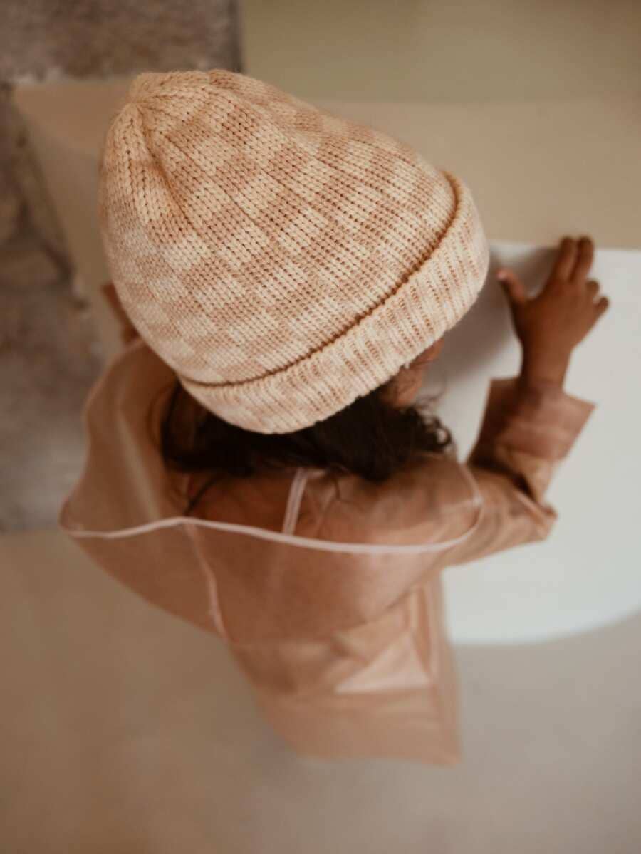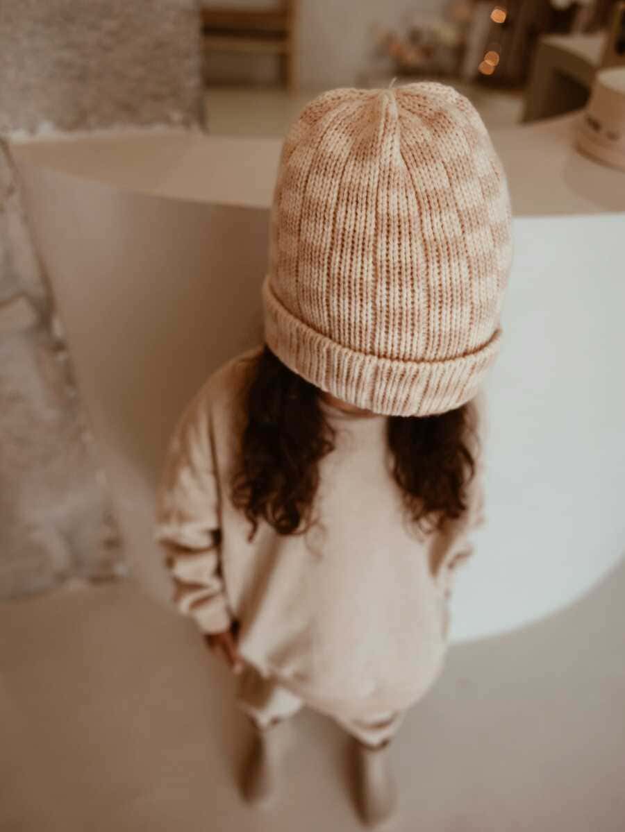 Bonnet enfant damier | Ivoire – Mrs Ertha