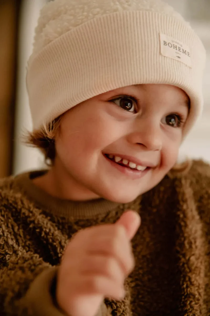 Bonnet confortable, très doux et chaud effet « peau de mouton ». Ne gratte pas.