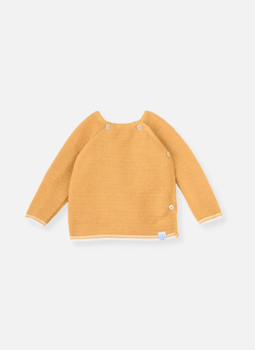 Une jolie brassière en tricot pour bébé, tricotée en France.
