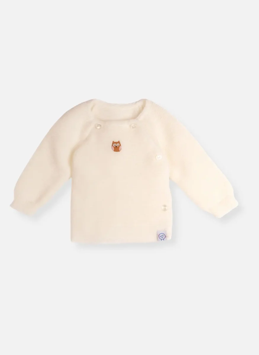 Brassière tricotée en France, ouverture latérale pratique et adorable chouette brodée. Chic, douce et intemporelle