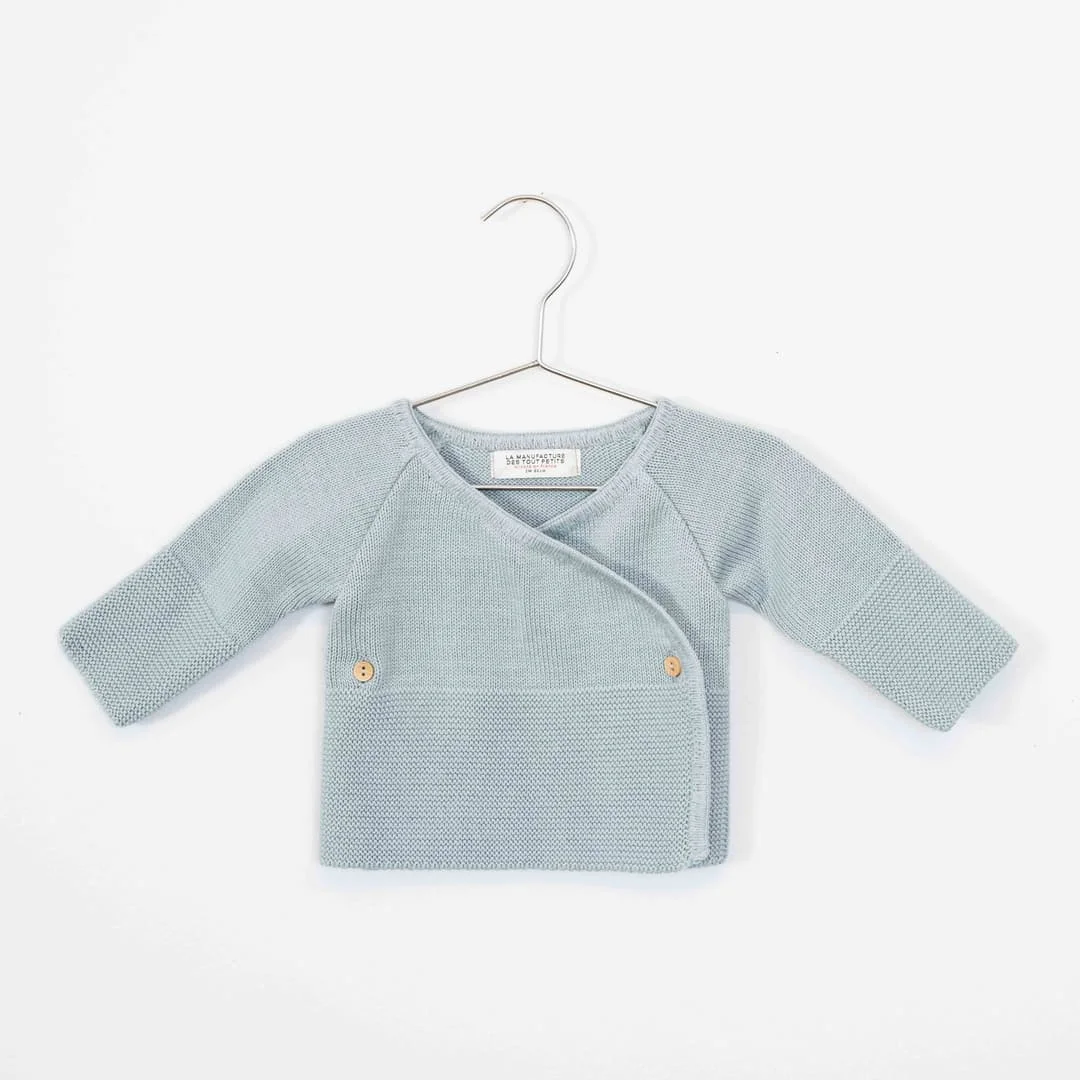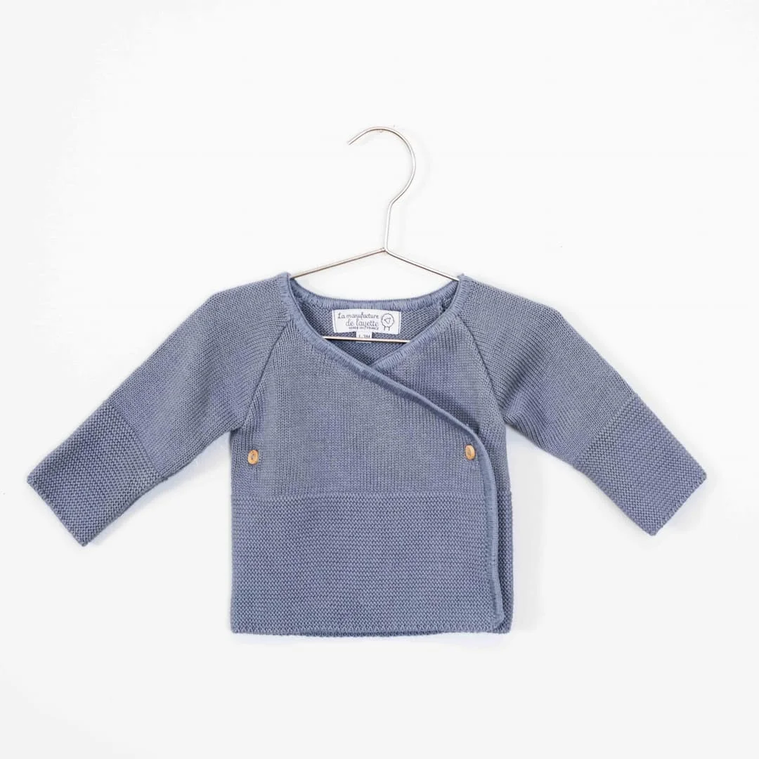 La brassière avec ses boutons en bois est très jolie portée sur bébé fille ou garçon. Notre brassière est tricotée et assemblée par nos couturières en France.