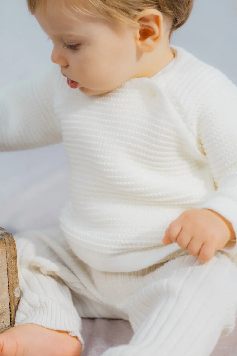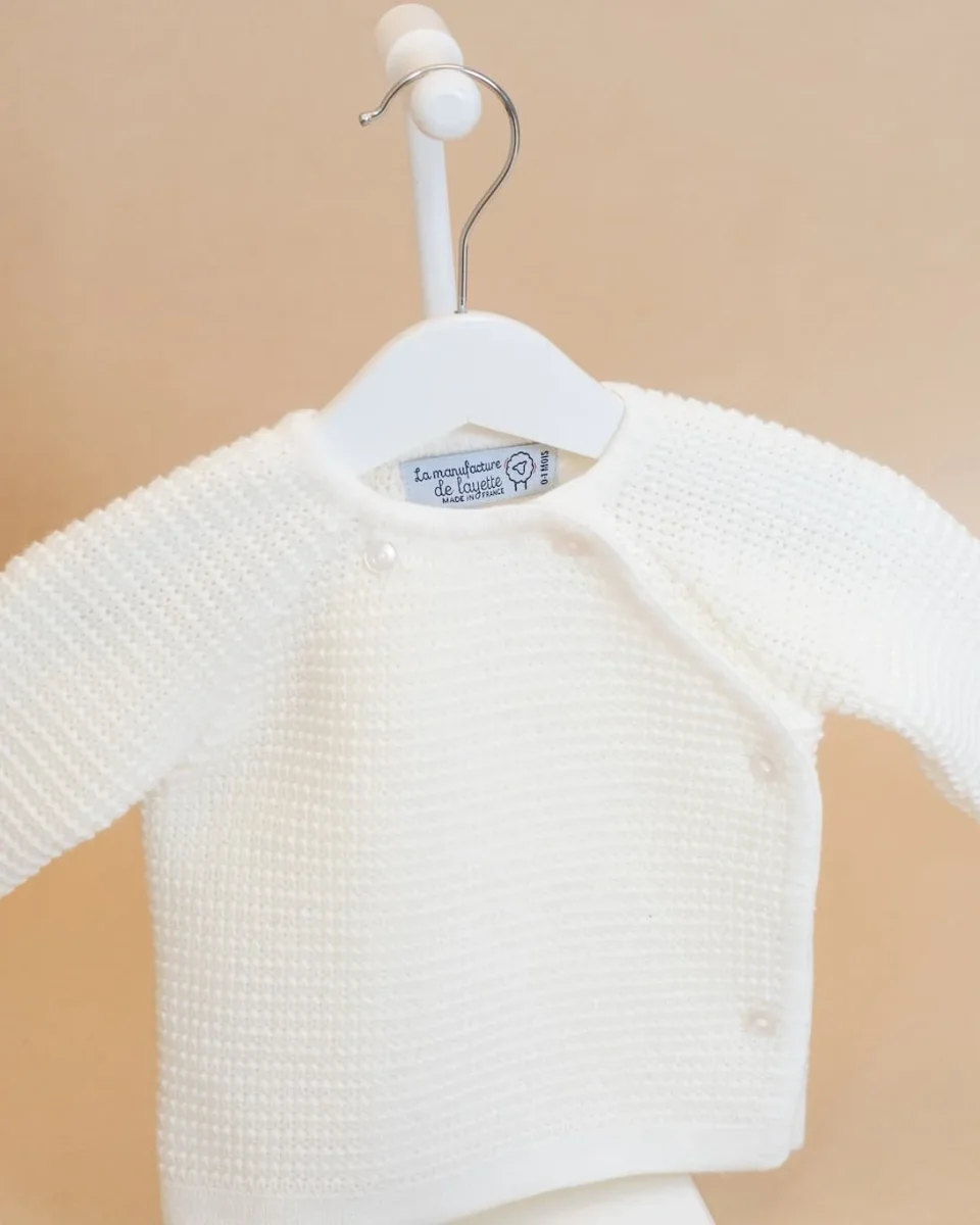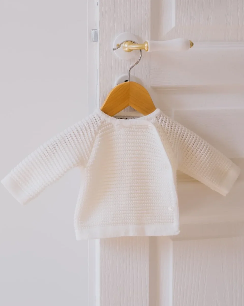 La brassière pour bébé tricotée en point de riz est un choix parfait pour garder votre bébé confortable et élégant. Tricotée en France, cette brassière est conçue pour offrir à votre bébé une chaleur douce et un ajustement confortable. Le point de riz ajoute une texture unique au tricot qui lui donne un aspect de petite vague , créant un look classique et intemporel.
