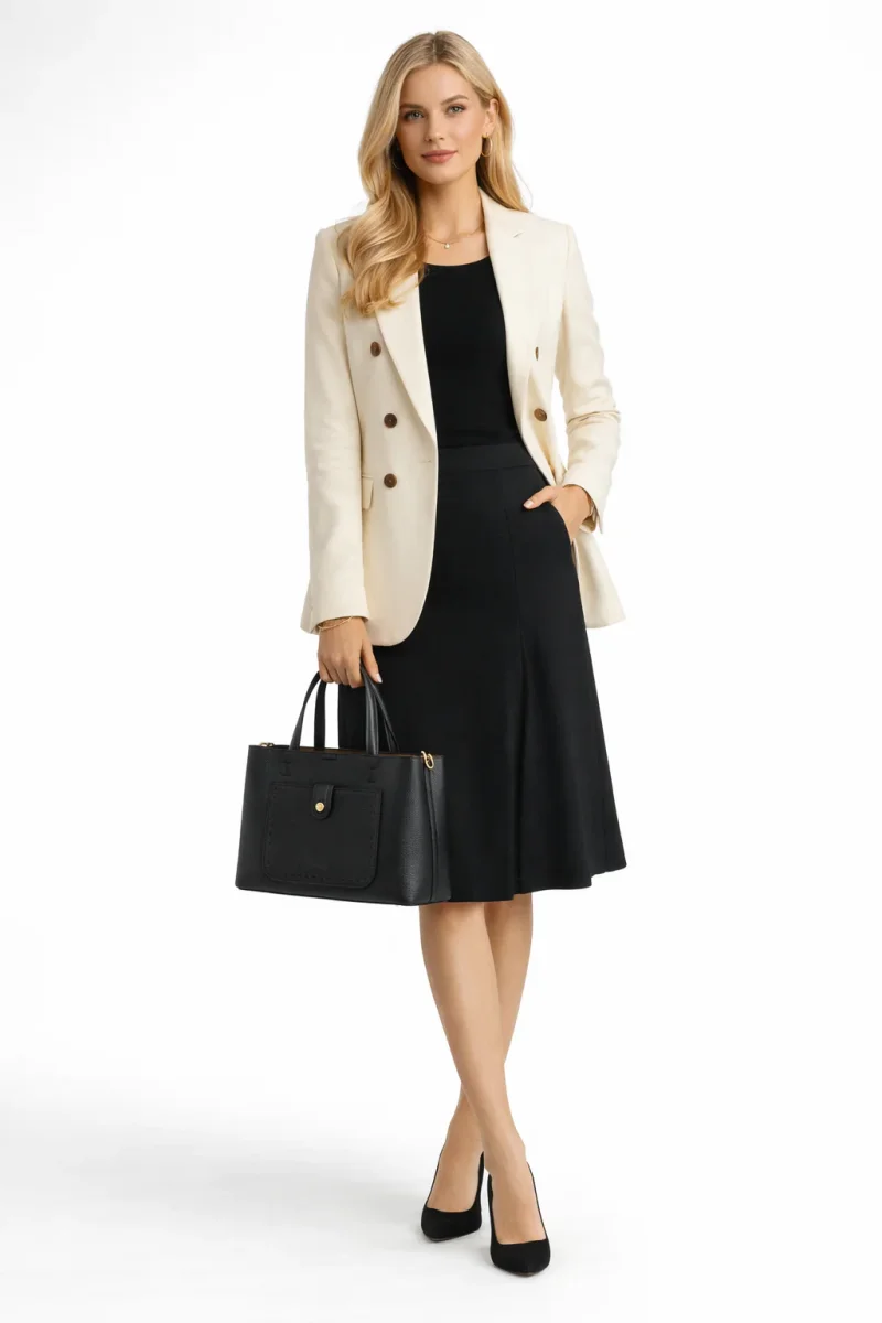 Avec des dimensions de 33,5 x 23 x 14 cm, ce sac à main est idéal pour un usage quotidien, que ce soit pour le bureau ou les sorties. Son design polyvalent et chic ajoute une touche de sophistication à n’importe quelle tenue.