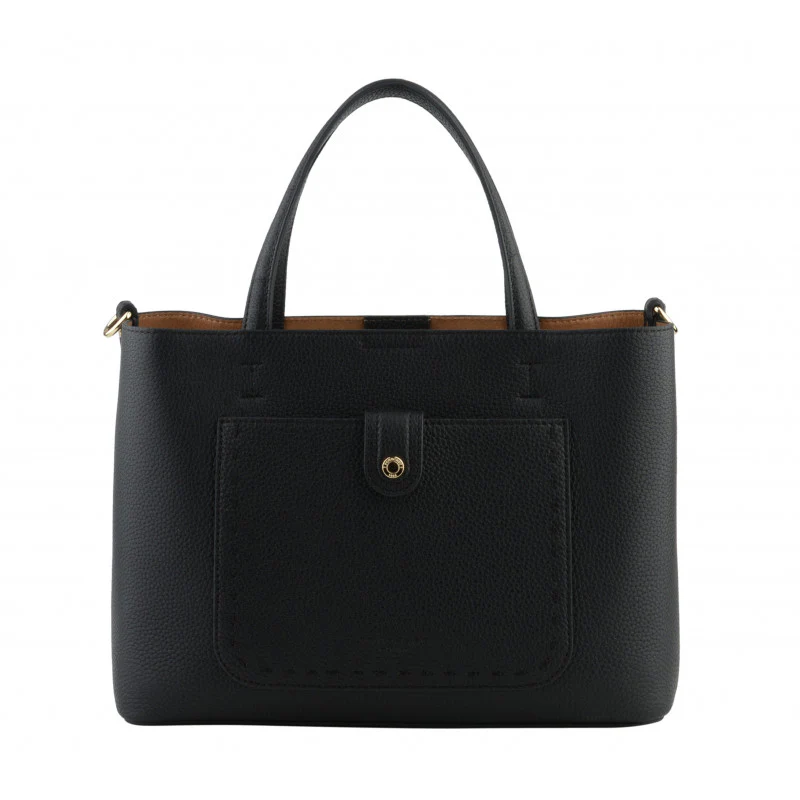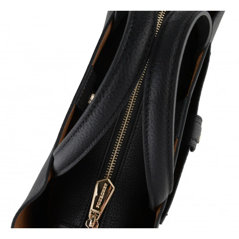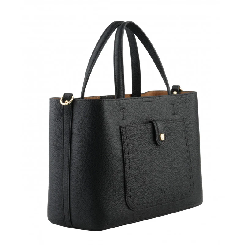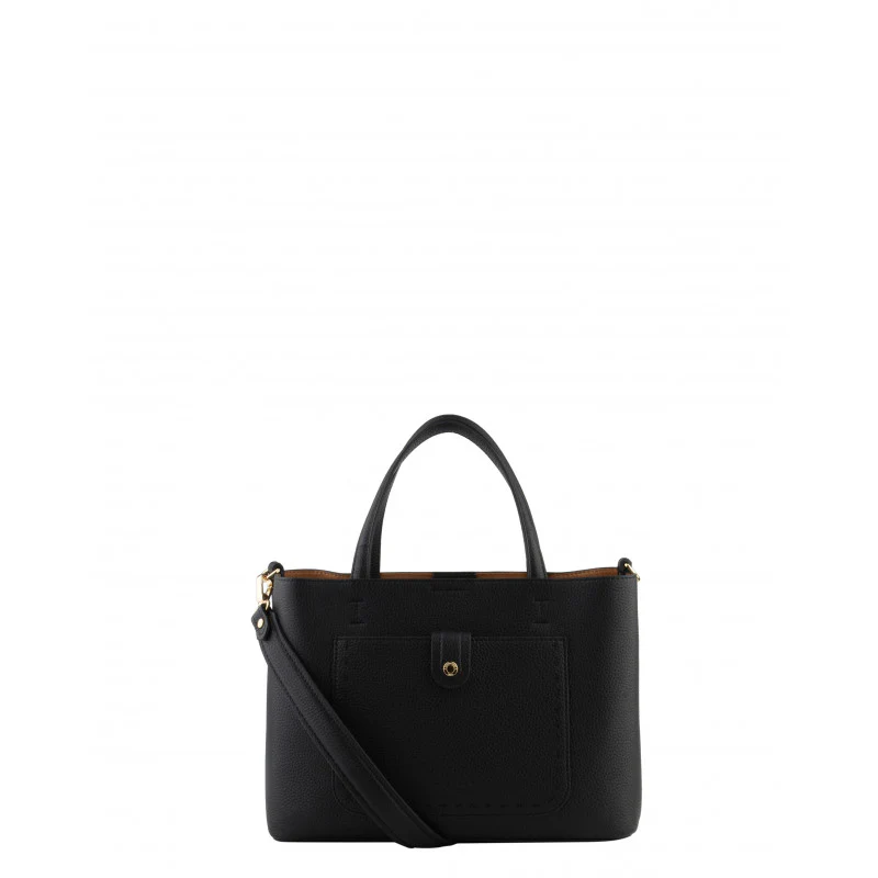 Ce modèle se distingue par sa forme structurée et sa silhouette moderne. Il est doté de deux poignées courtes pour un porté main confortable, ainsi qu’une bandoulière amovible et réglable qui permet de le porter à l’épaule ou en travers. La fermeture éclair assure la sécurité de vos effets personnels, tandis qu’une poche extérieure avec bouton-pression et plusieurs compartiments intérieurs facilitent l’organisation de vos affaires.