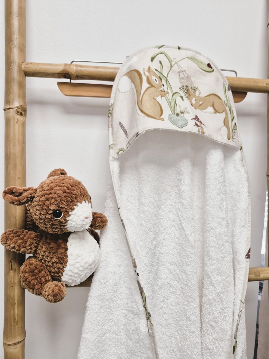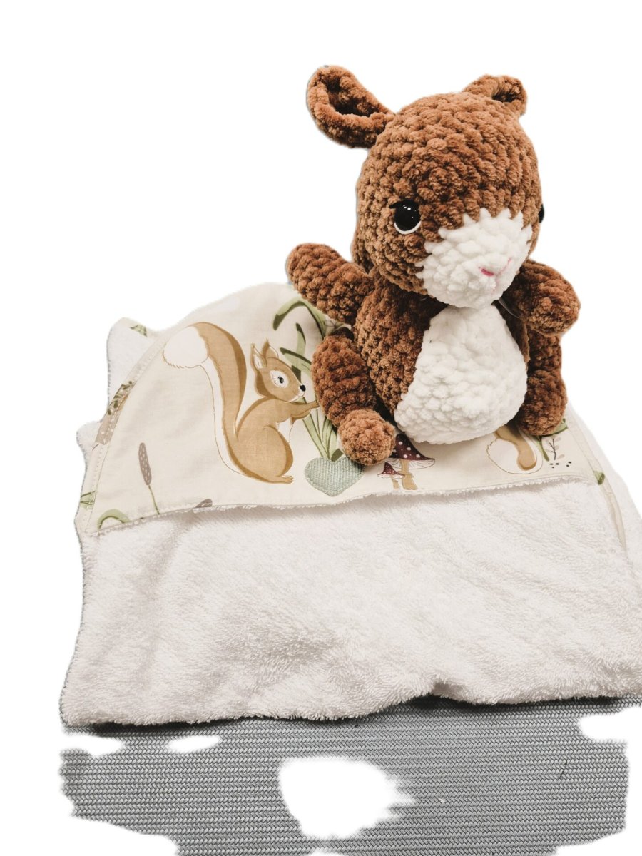 Cape de bain + Peluche écureuil – Cadeau de naissance fait main