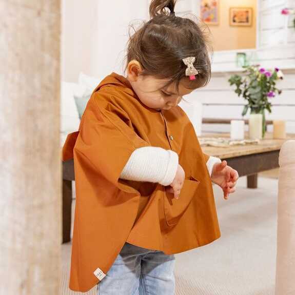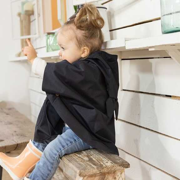 La cape de pluie Joey est fabriquée en polyester recyclé (et recyclable) et de manière écoresponsable au Portugal : un accessoire pratique et ludique pour affronter les averses en balade ou à la récré. S’enfile facilement par la tête, comme un poncho. Ouverture au col par boutons pressions.