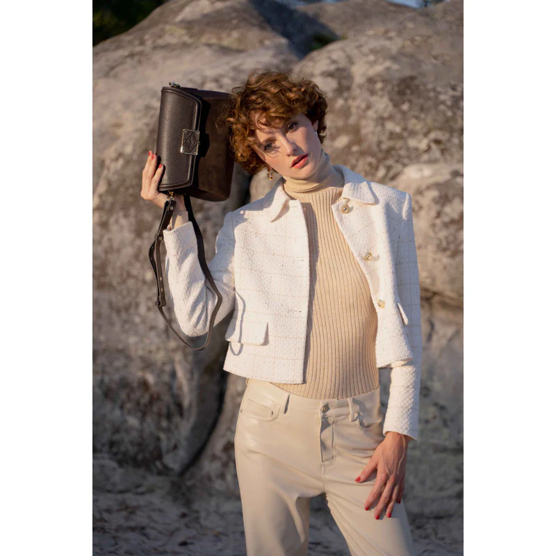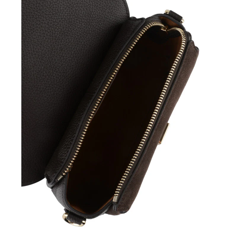 Ce sac à main possède un compartiment, refermable par fermeture. Deux poches plaquées, avant et arrière se trouvent à l’intérieur. Une bandoulière amovible et réglable est vendue avec le sac. Le sac est refermable par locket.
