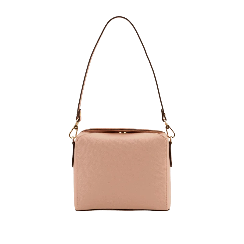Ce modèle est équipé d’une bandoulière ajustable, permettant de le porter à l’épaule ou en travers du corps, offrant ainsi un confort d’utilisation optimal. La bandoulière marron crée un contraste subtil avec le rose, ajoutant une dimension esthétique supplémentaire. La fermeture éclair assure la sécurité de vos affaires, tandis que les détails en métal doré, comme les attaches de la bandoulière, apportent une note de sophistication.