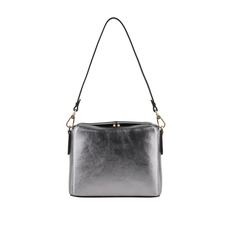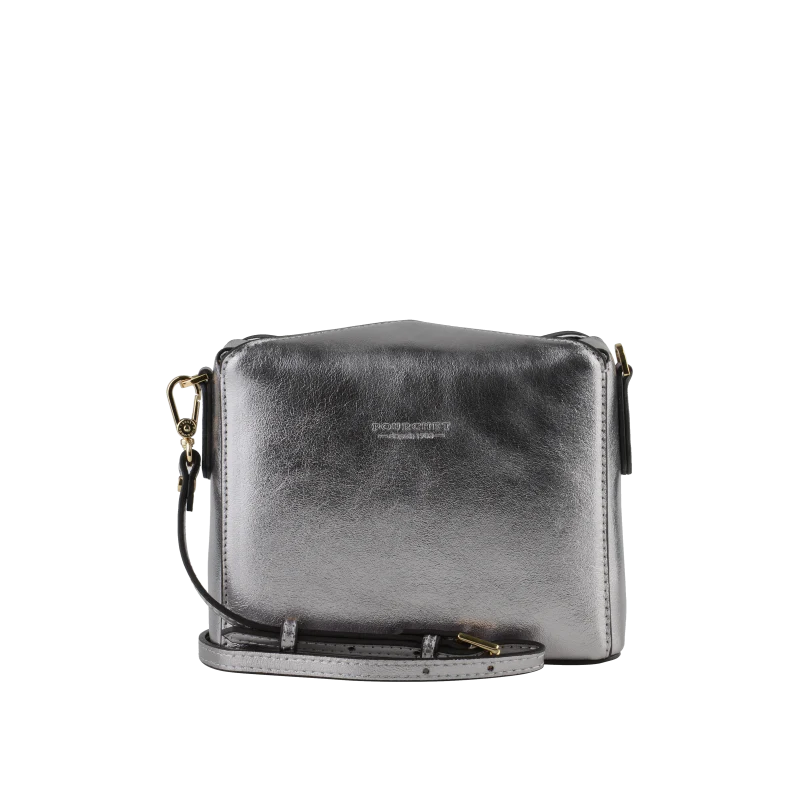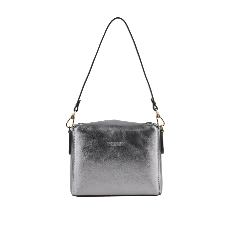 Le sac à main Cassetta Metallic en acier de la marque Pourchet se distingue par son design élégant et moderne. Sa finition métallique brillante reflète la lumière, ajoutant une touche de glamour à n’importe quelle tenue.