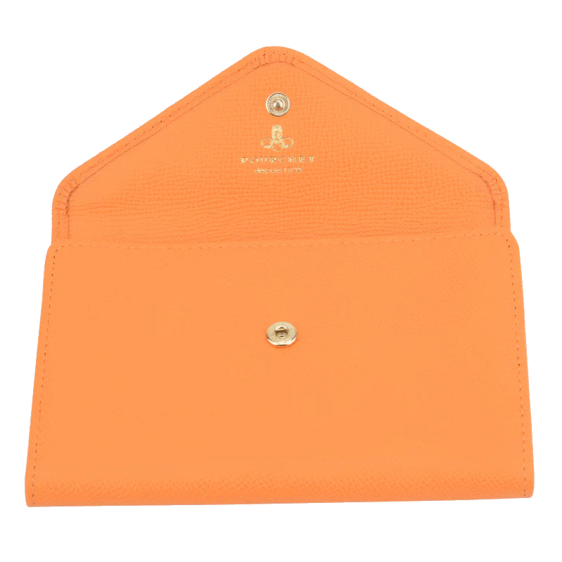 Le portefeuille plat orange de la marque Pourchet est un accessoire à la fois élégant et fonctionnel. Sa couleur orange vif apporte une touche de modernité et de dynamisme à votre tenue.