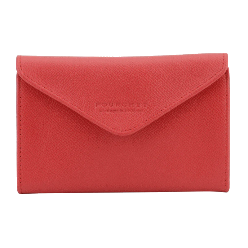 Le portefeuille plat rouge de la marque Pourchet est un accessoire qui allie élégance et praticité. Confectionné en cuir texturé, il se distingue par sa couleur rouge vif, apportant une touche audacieuse à toutes vos tenues.