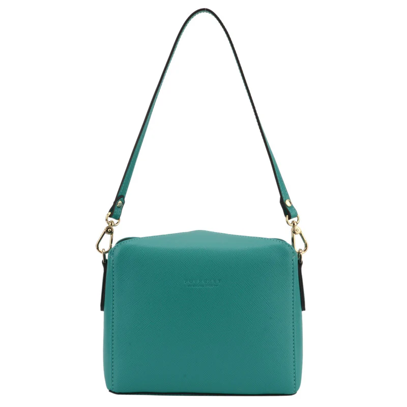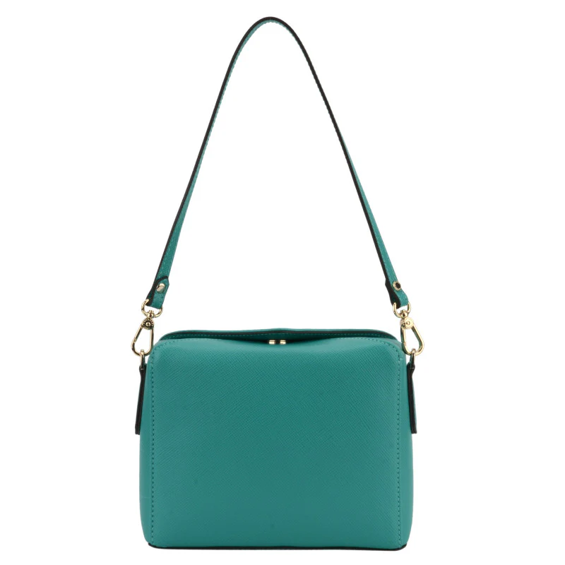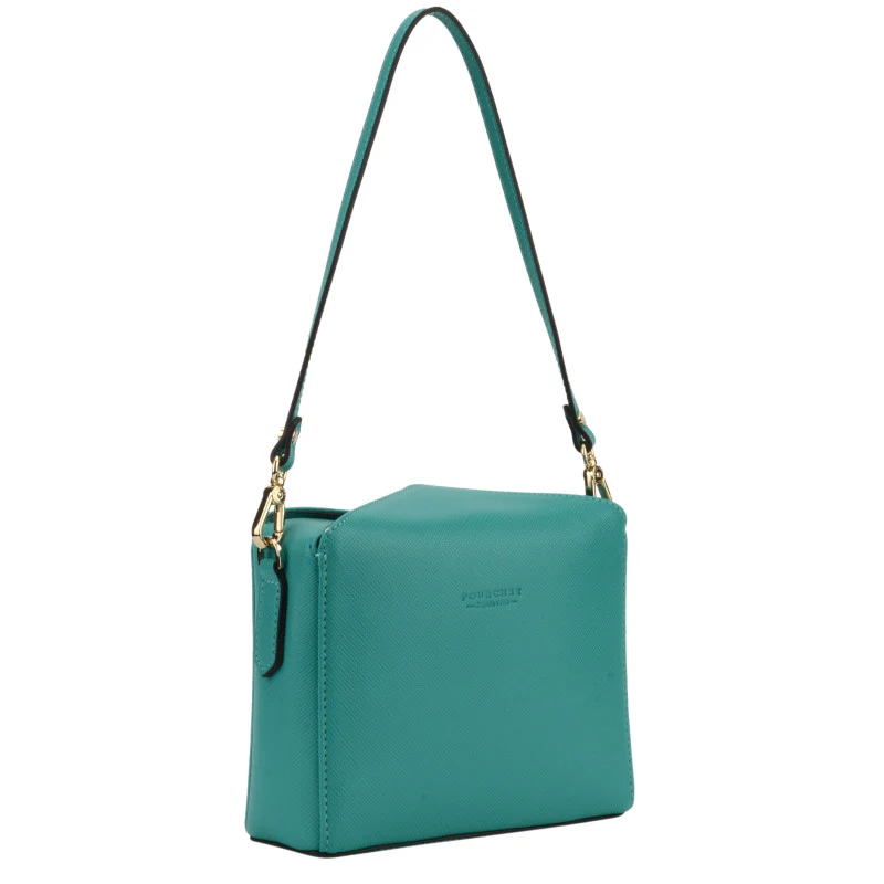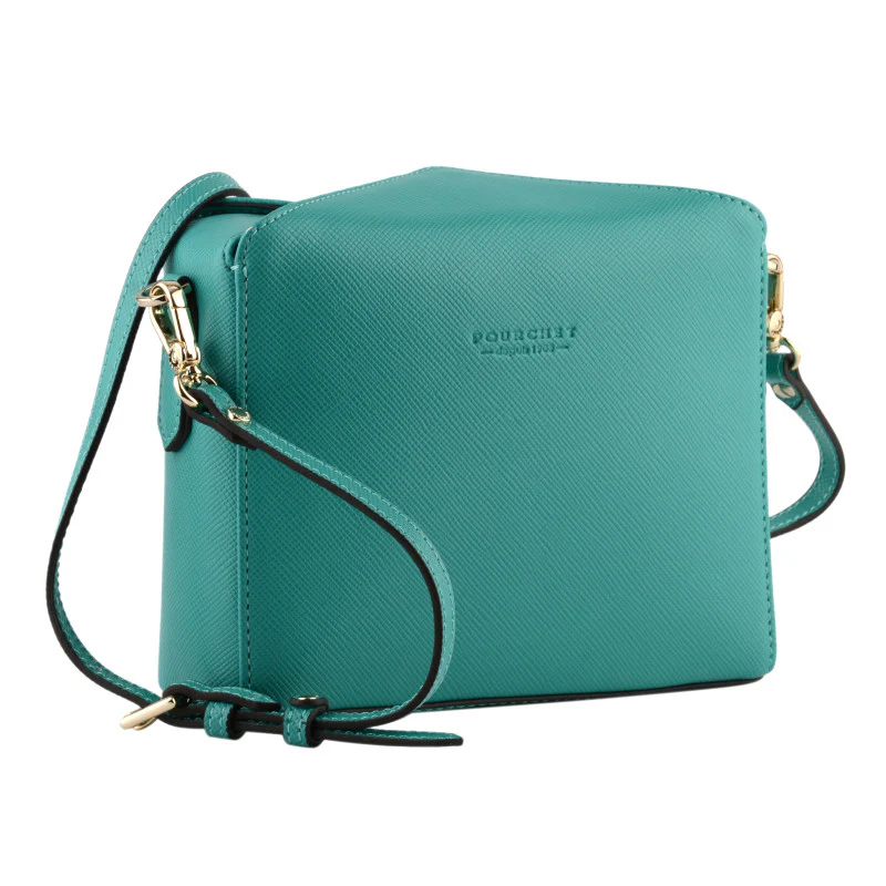 Ce modèle est équipé d’une anse portée épaule, ajustable pour un confort optimal lors du transport. L’anse présente une finition en cuir noir, ajoutant un contraste chic avec le turquoise éclatant du sac. La fermeture zippée garantit la sécurité de vos effets personnels, tandis que des éléments en métal doré embellissent le sac, apportant une touche de sophistication.