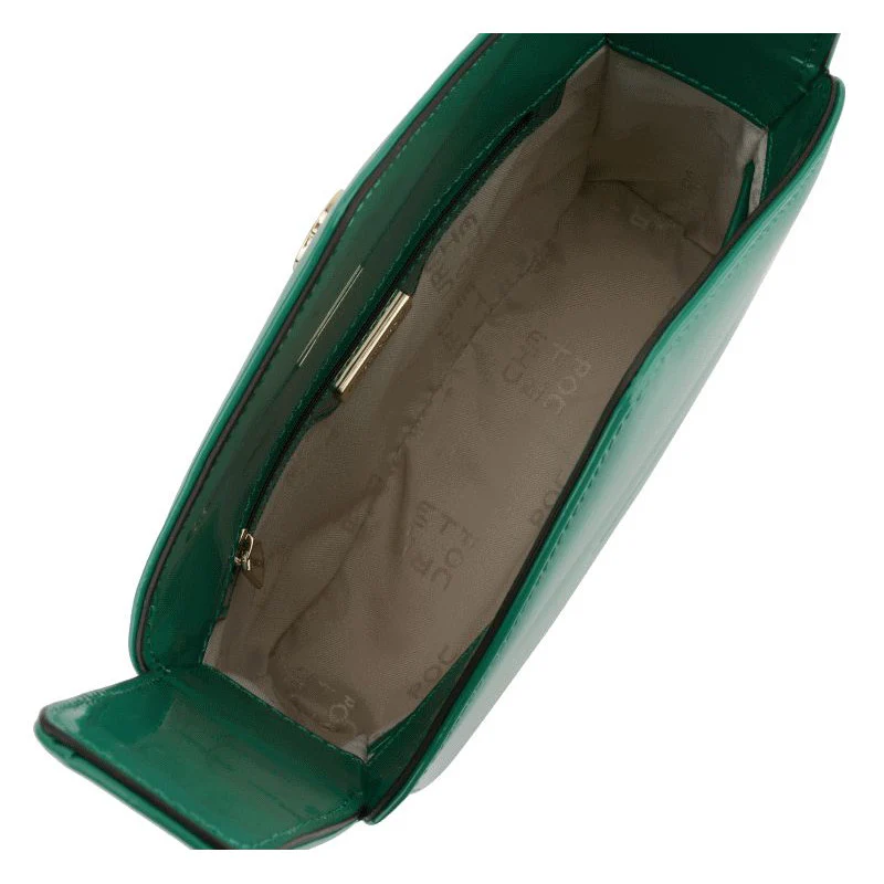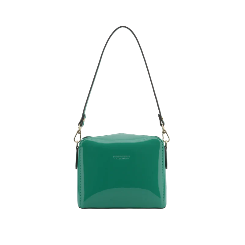 Ce sac à main, nommé Cassetta, se distingue par sa teinte émeraude brillante, apportant une touche de couleur vibrante à n’importe quelle tenue. Sa finition laquée accentue la profondeur de la couleur, lui conférant un aspect moderne et élégant.