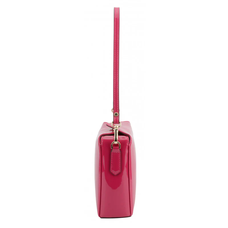 Le sac porté épaule vernis fuchsia de la ligne Cassetta est non seulement un accessoire de mode, mais également un symbole de style audacieux, parfait pour compléter toute tenue moderne.