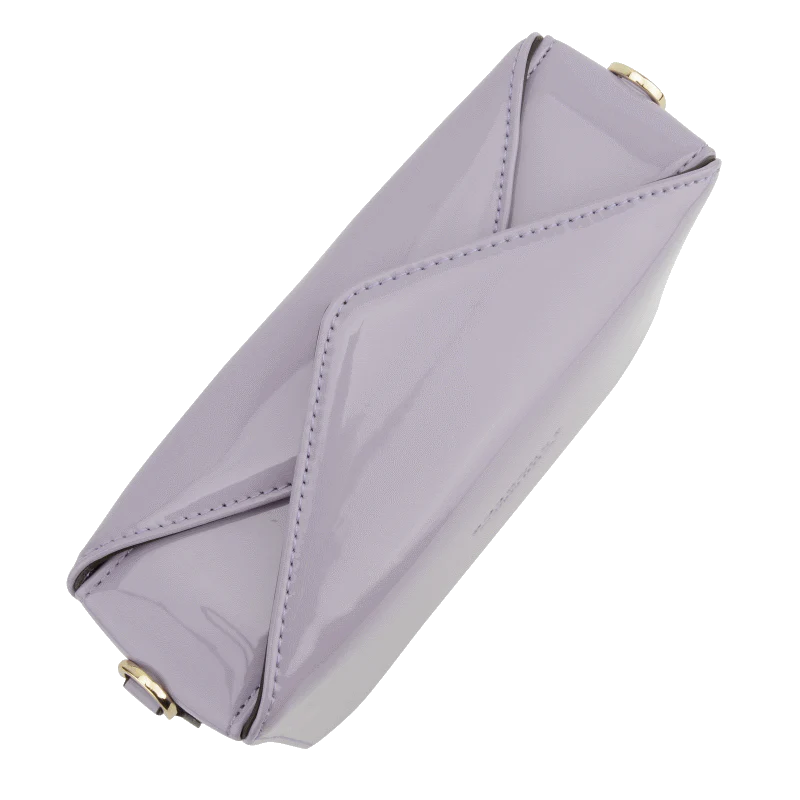 Le sac Cassetta en vernis lilas est un choix idéal pour celles qui souhaitent ajouter une touche de couleur et de chic à leur style quotidien.