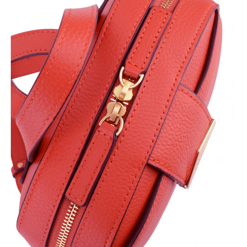 Avec sa couleur rouge vif, ce sac attire l’attention tout en restant chic. Les détails en doré, tels que la fermeture éclair et la plaque de la marque, ajoutent une touche de sophistication à son design moderne.