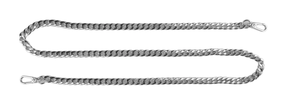 Optez pour cette chaîne en métal argent pour un accessoire à la fois chic et fonctionnel, idéal pour toutes les occasions.