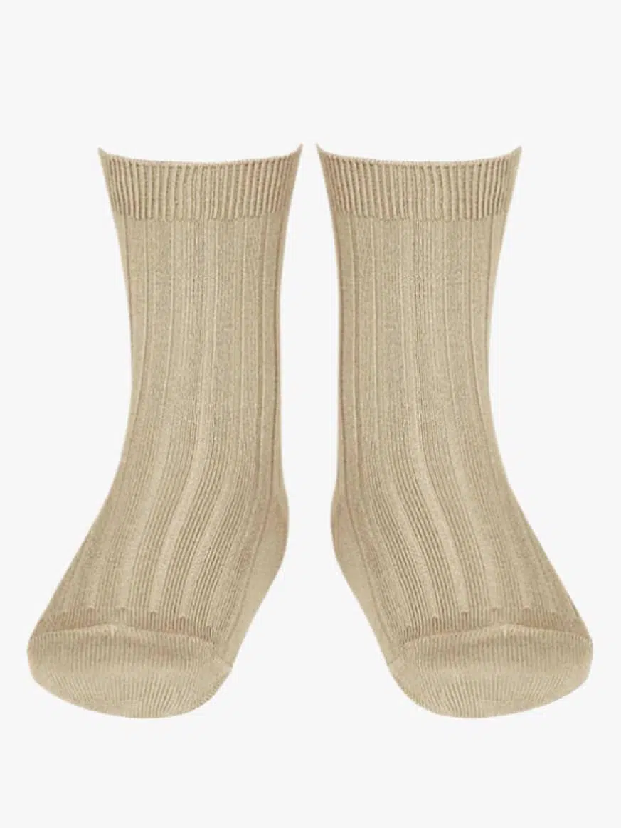Plongez dans l’élégance subtile avec ces chaussettes courtes côtelées beiges, une pièce incontournable pour les tout-petits en quête de style et de confort. Arborant un design côtelé raffiné, ces chaussettes offrent une texture délicate et une allure classique. Confectionnées avec un soin particulier, ces chaussettes beiges assurent un ajustement parfait et restent confortablement en place tout au long de la journée, même pour les petits pieds les plus actifs.