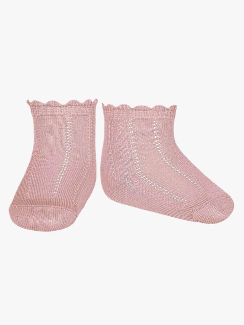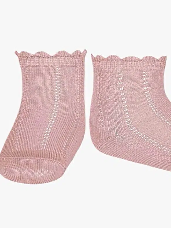 Chaussettes bébé fille courtes ajourées – Rose