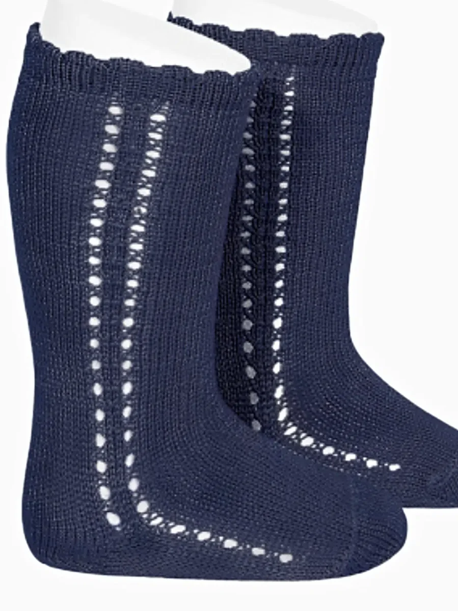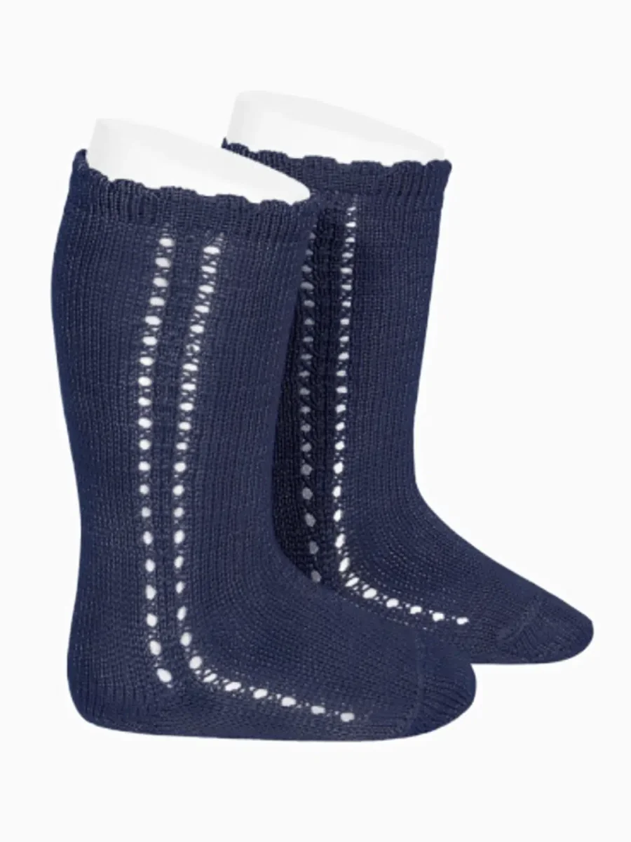 Chaussettes hautes bébé ajourées – Bleu marine