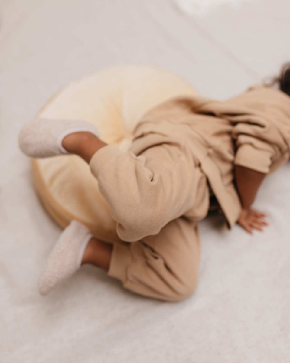 Les chaussons pour enfant en Sherpa unisexe -de la marque portugaise Mrs Ertha– seront parfaits pour avoir les pieds au chaud cet hiver ! Tout doux grâce leur matière sherpa/ bouclette et l’intérieur polaire, ils sont réconfortants, souples et agréables à porter ! Grâce à leurs élastiques, ils sont également très faciles à enfiler seul pour les plus petits. Le gros + de ces chaussons : la semelle antidérapante pour ne pas glisser !