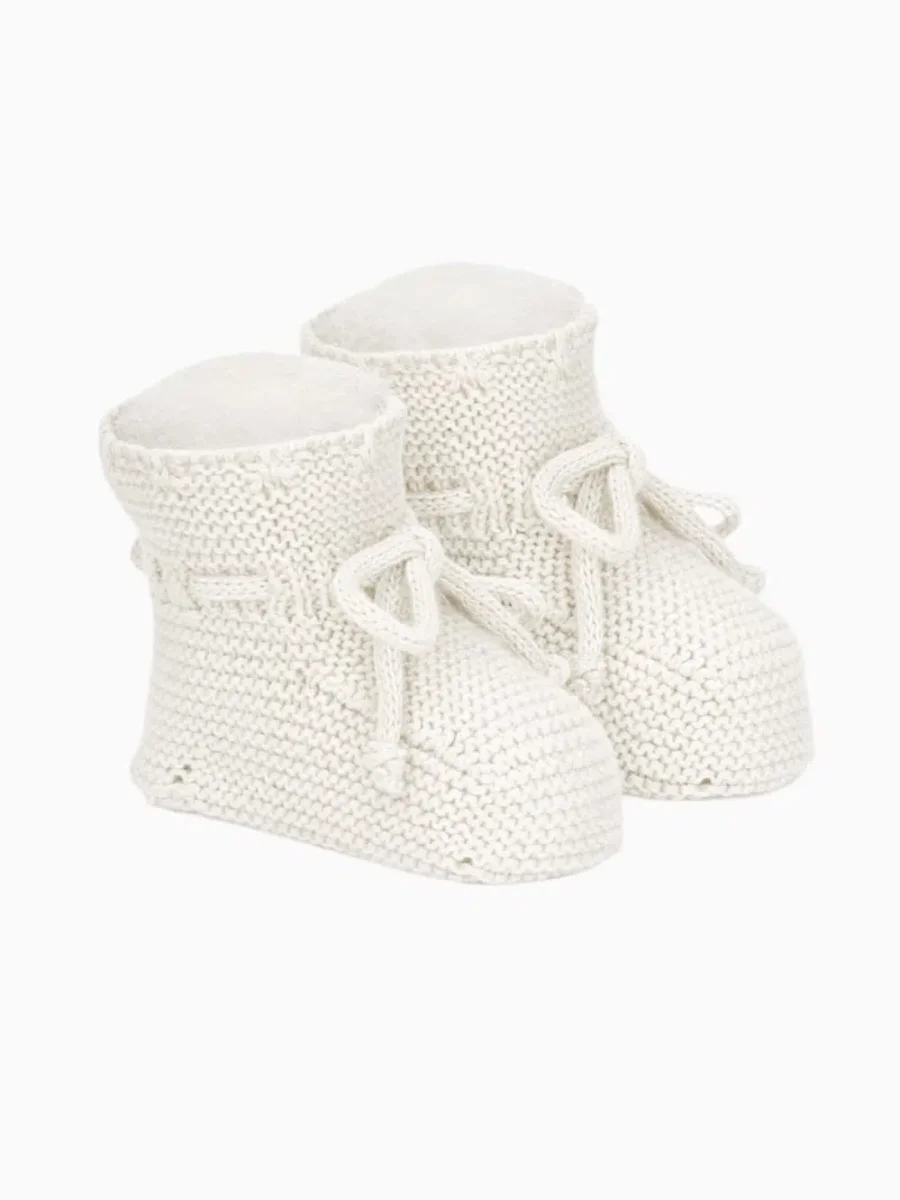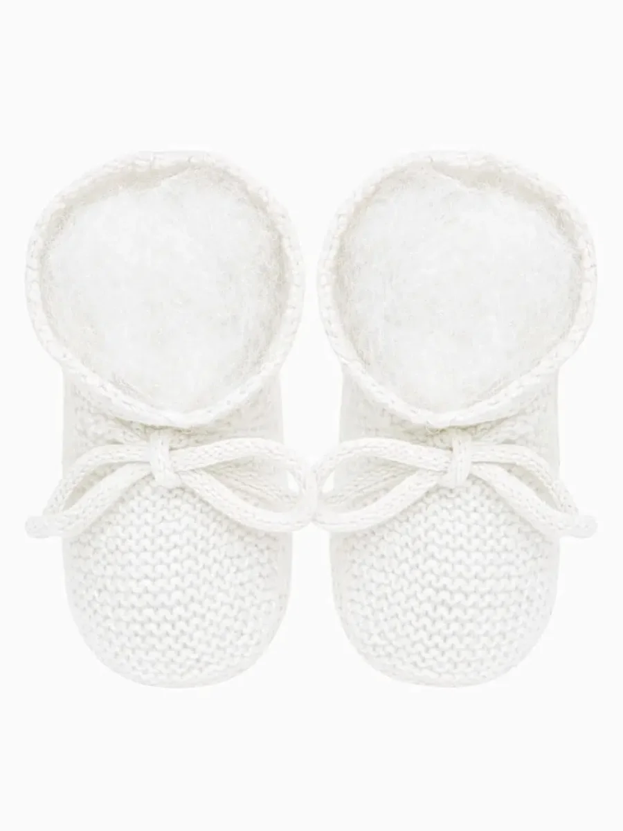 Chaussons naissance en point mousse – Blanc