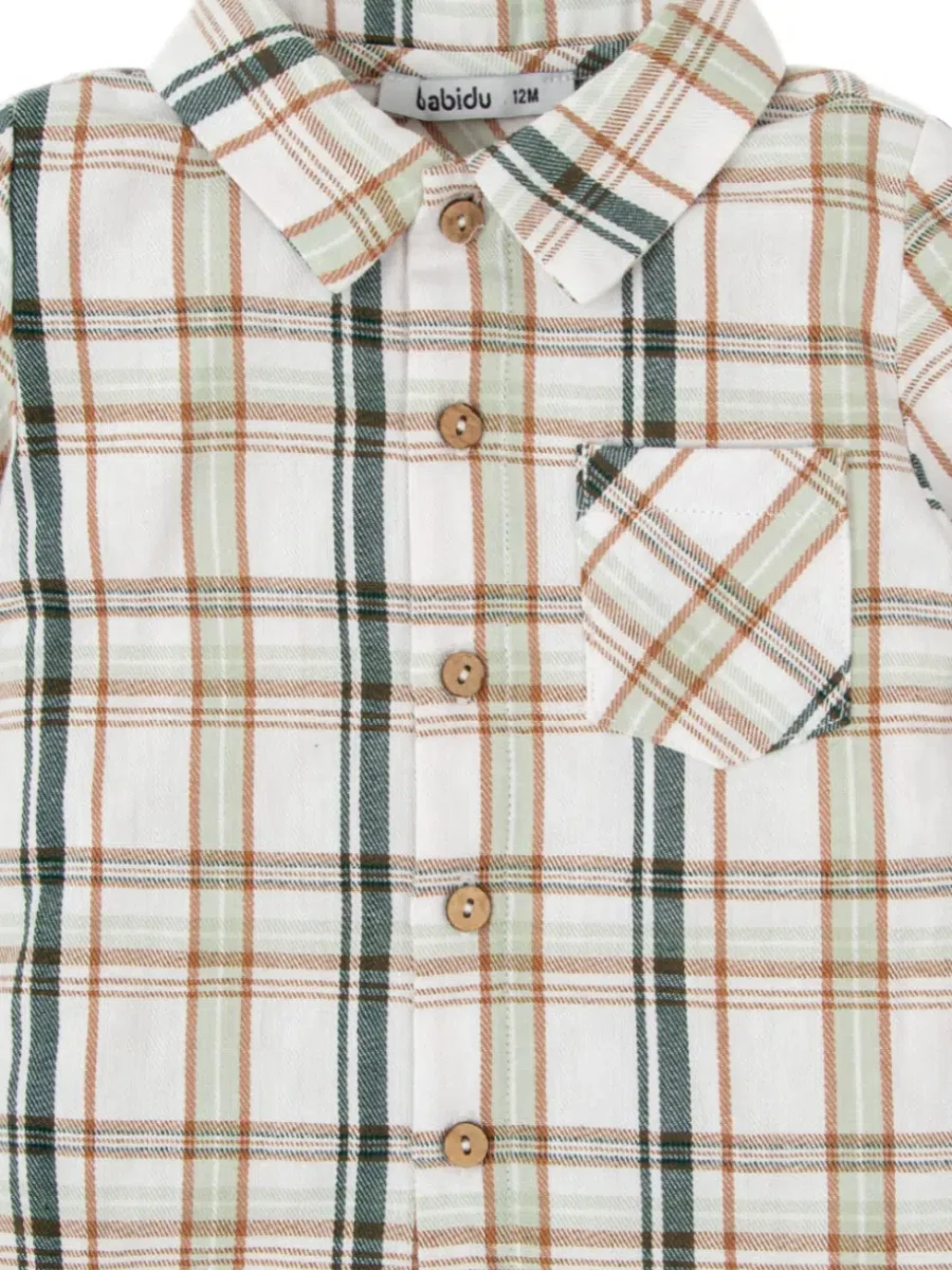 Ajoutez une touche de charme rustique à la garde-robe de votre petit garçon avec cette ravissante chemise bébé à carreaux. Conçue dans les tons de vert, cette chemise est parfaite pour les week-ends à la campagne et les sorties en plein air, offrant un style champêtre authentique et intemporel.