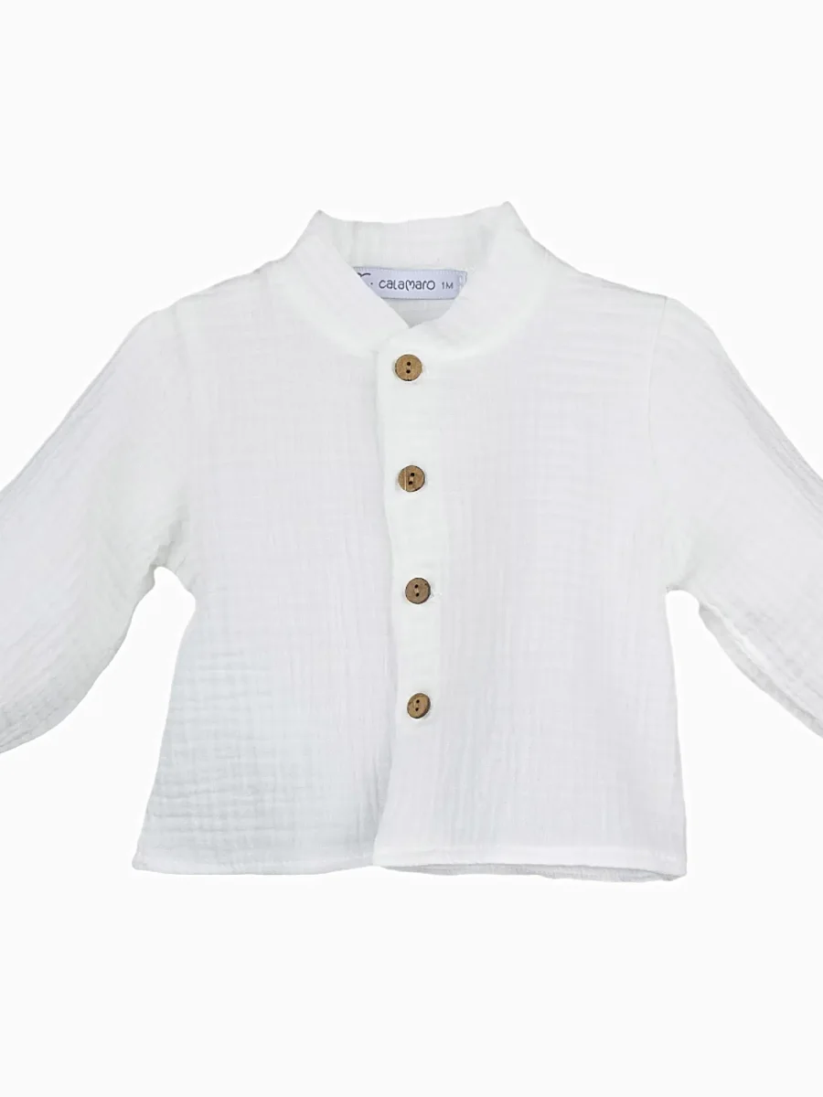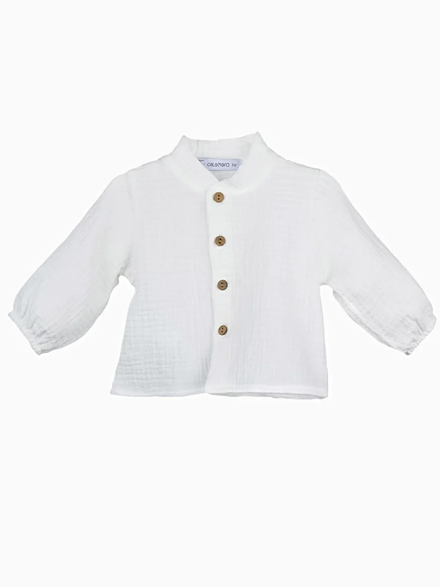 Fabriquée avec soin en Espagne, cette chemise en gaze de coton de haute qualité allie confort, douceur et élégance. Sa coupe classique, mise en valeur par un col mao délicat, confère à votre enfant un style chic et épuré. Ce col apporte une subtile touche de modernité à un design intemporel, idéal pour les grandes occasions comme les mariages, les baptêmes ou une sortie élégante en famille.