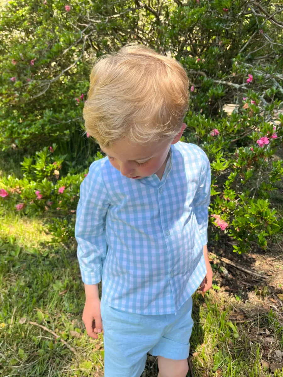 Cette chemise garçon à carreaux s’associe parfaitement avec notre short turquoise en coton et lin pour un ensemble harmonieux et élégant. Parfaite pour un événement familial, une cérémonie ou une promenade estivale, elle incarne le style classique et indémodable des vêtements pour enfants.