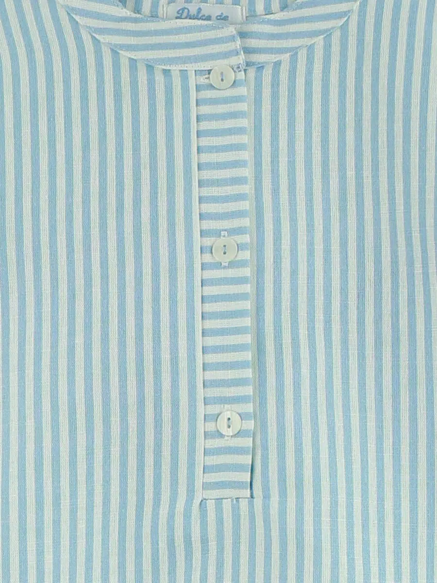 Chemise garçon à col mao rayée – Bleu ciel/blanc