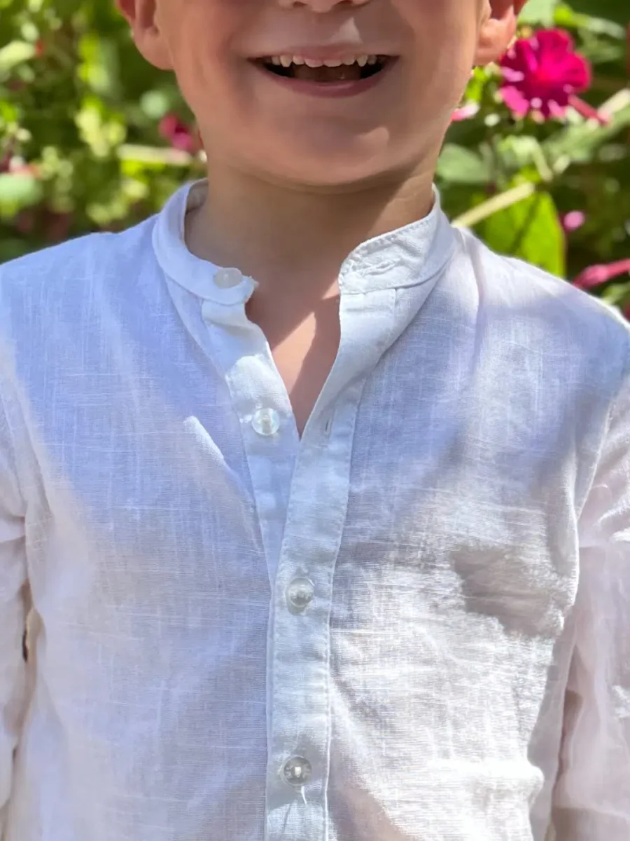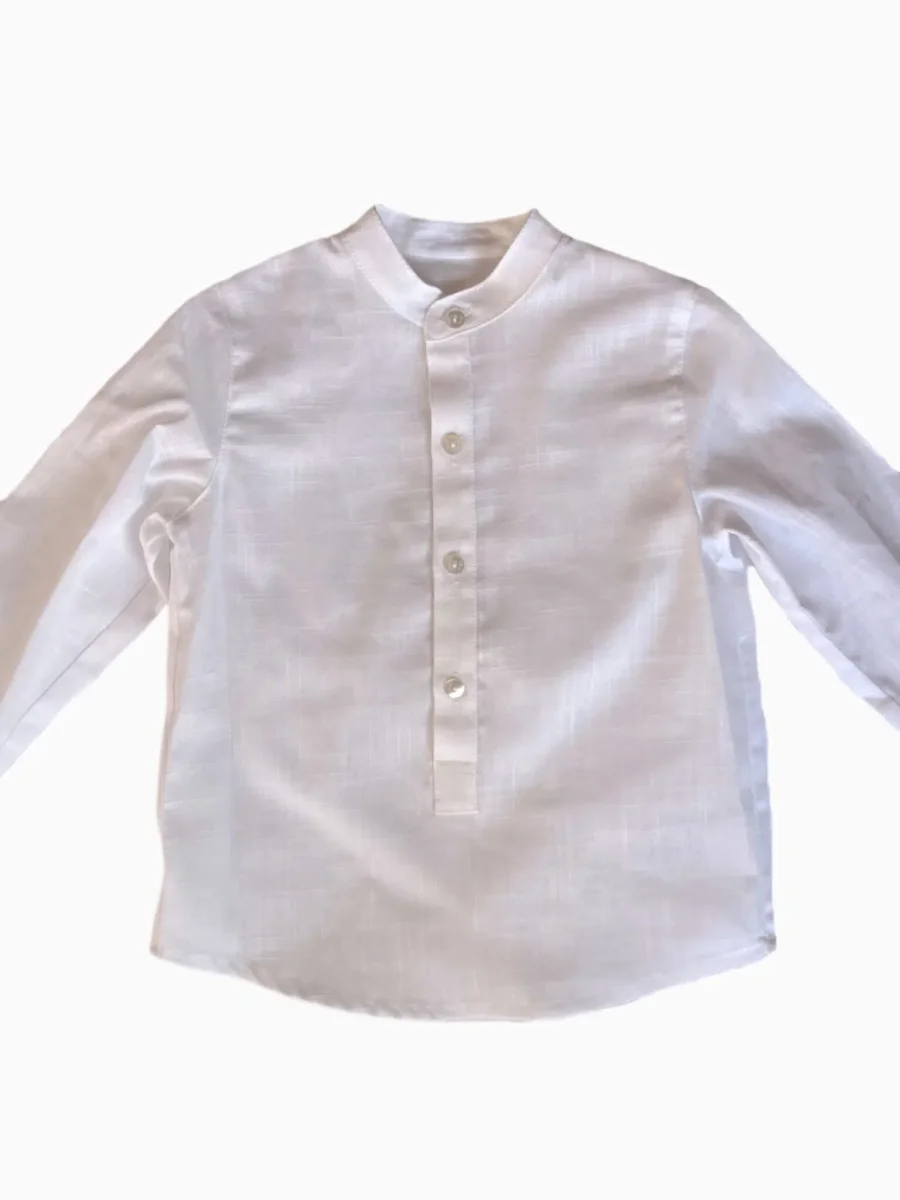 Fabriquée avec soin, cette chemise garçon légère blanche élégante à col mao reflète un savoir-faire de qualité, garantissant durabilité et confort. Offrez à votre enfant une pièce incontournable qui allie tradition et modernité, tout en sublimant son allure.