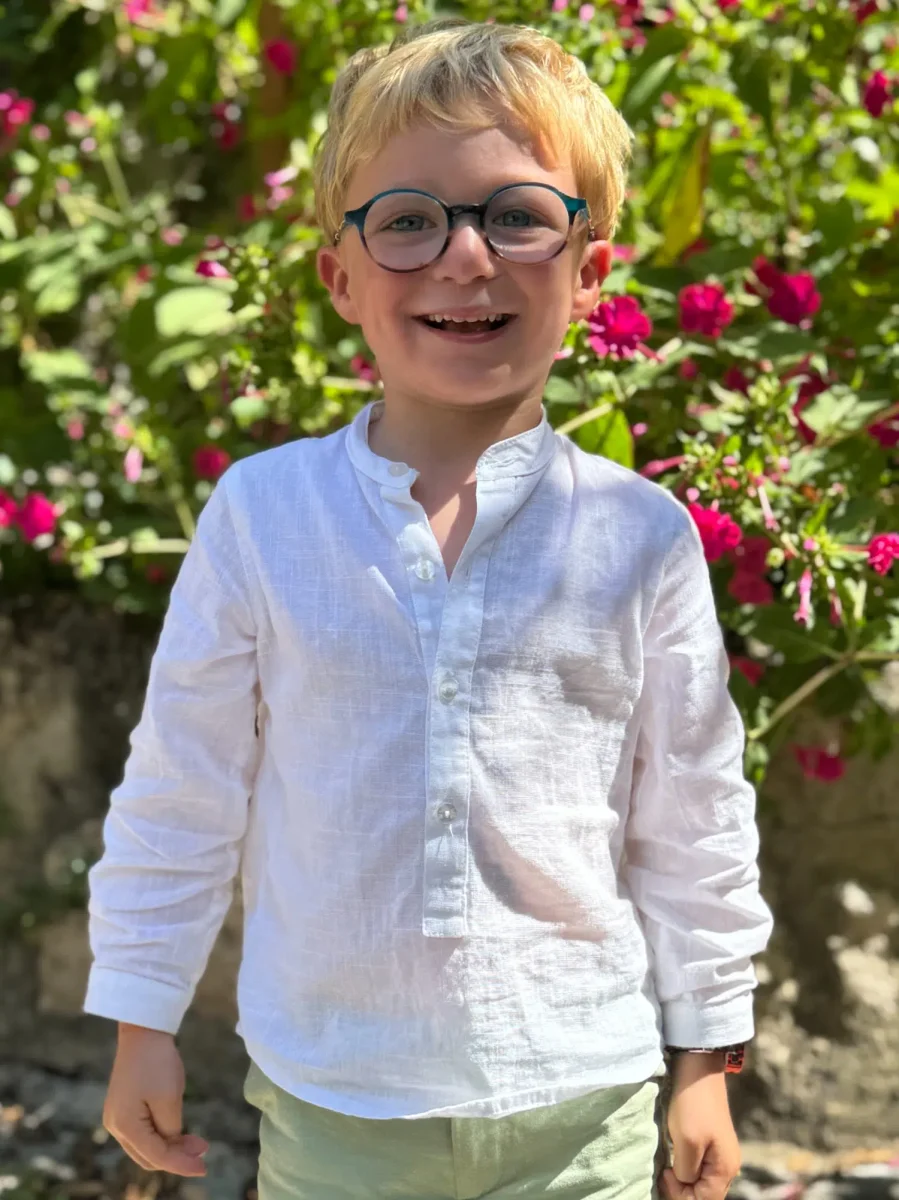 Apportez une touche de raffinement à la garde-robe de votre enfant avec notre chemise garçon légère blanche élégante à col mao. Ce modèle classique, dans une teinte blanche, incarne l’élégance intemporelle, idéale pour toutes les occasions spéciales ou les moments du quotidien où l’on souhaite soigner le style de son petit garçon.
