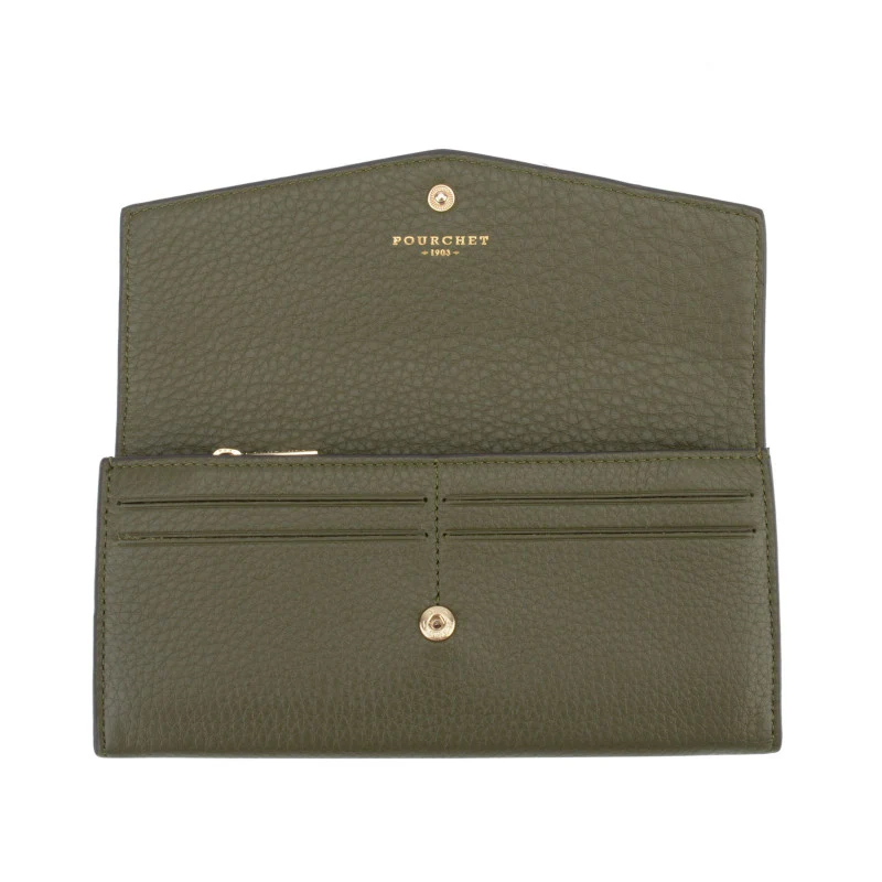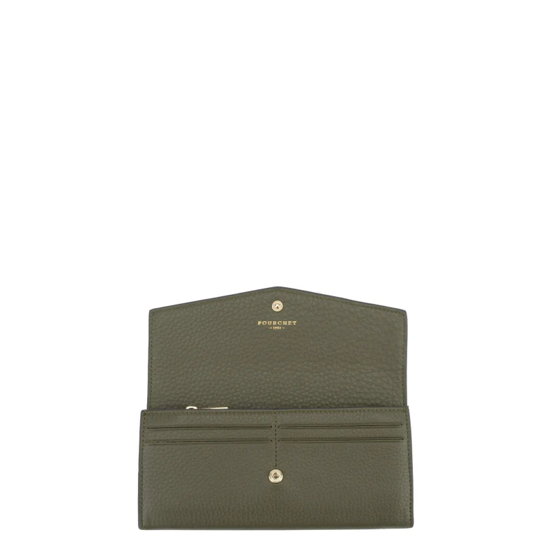 Ce grand porte-monnaie de couleur kaki de la marque Pourchet est l’accessoire parfait pour allier élégance et fonctionnalité. Fabriqué en cuir de veau, il offre une texture agréable au toucher et une durabilité remarquable grâce à sa finition légèrement grainée.